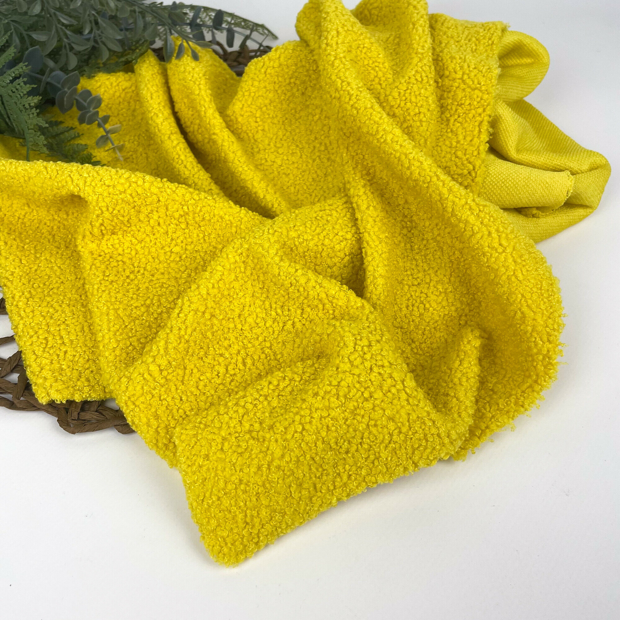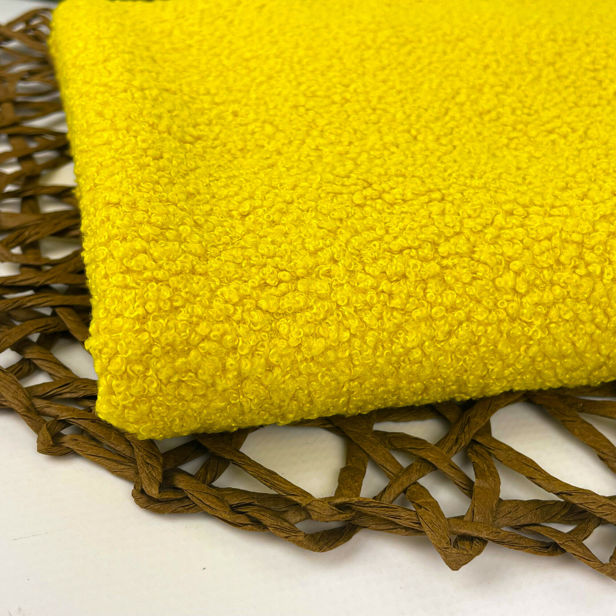 Купить Мех искусственный для игрушек, кудрявый, ткань букле, отрез 100*50 см, цвет Желтый, 100 п/э.