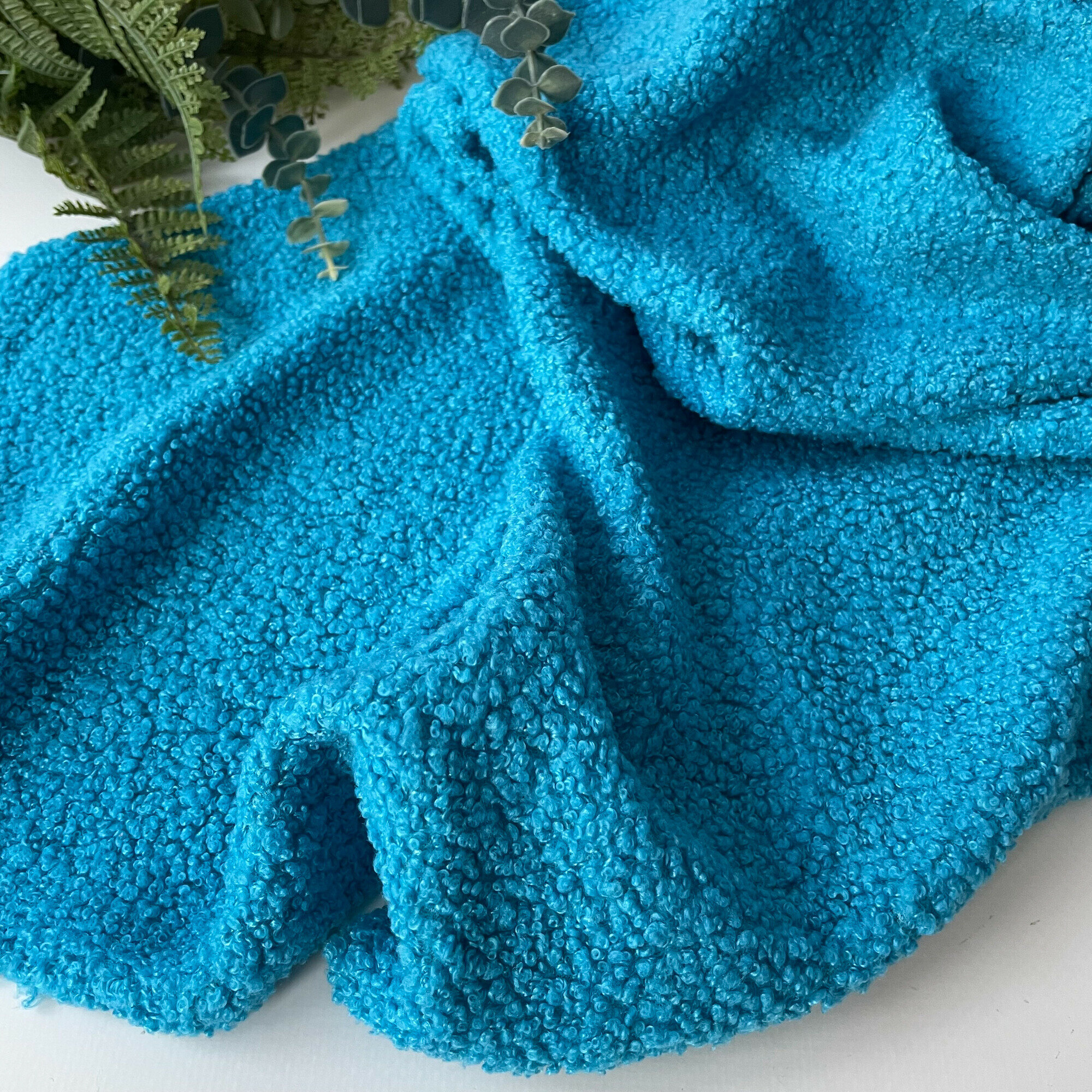 Мех искусственный для игрушек, кудрявый, ткань букле, отрез 100*50 см, цвет Аквамарин, 100 п/э.