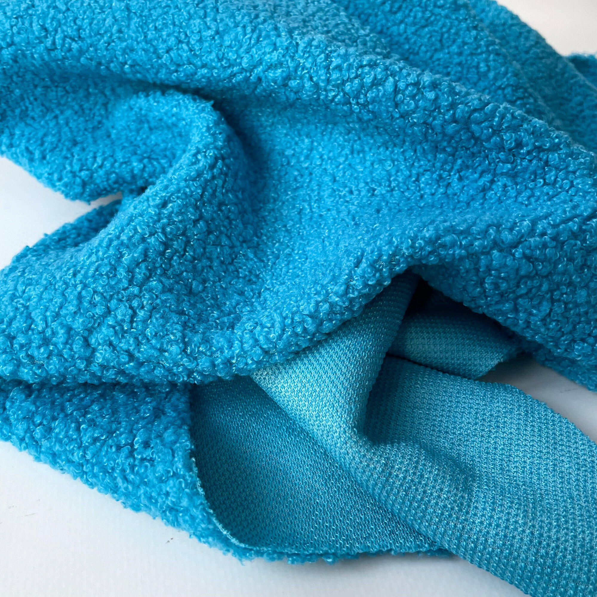Купить Мех искусственный для игрушек, кудрявый, ткань букле, отрез 100*50 см, цвет Лазурный, 100 п/э.