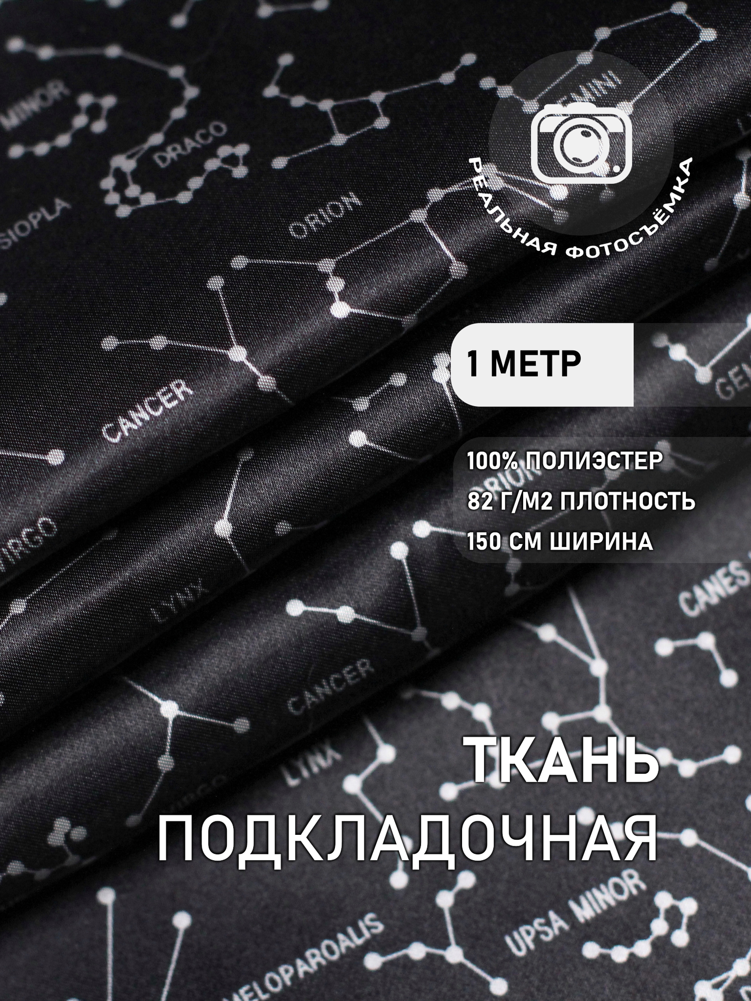Ткань подкладочная нэви галактика MDC FABRICS PC3/5. Полиэстер 100%. Отрез 1 метр интересное:
