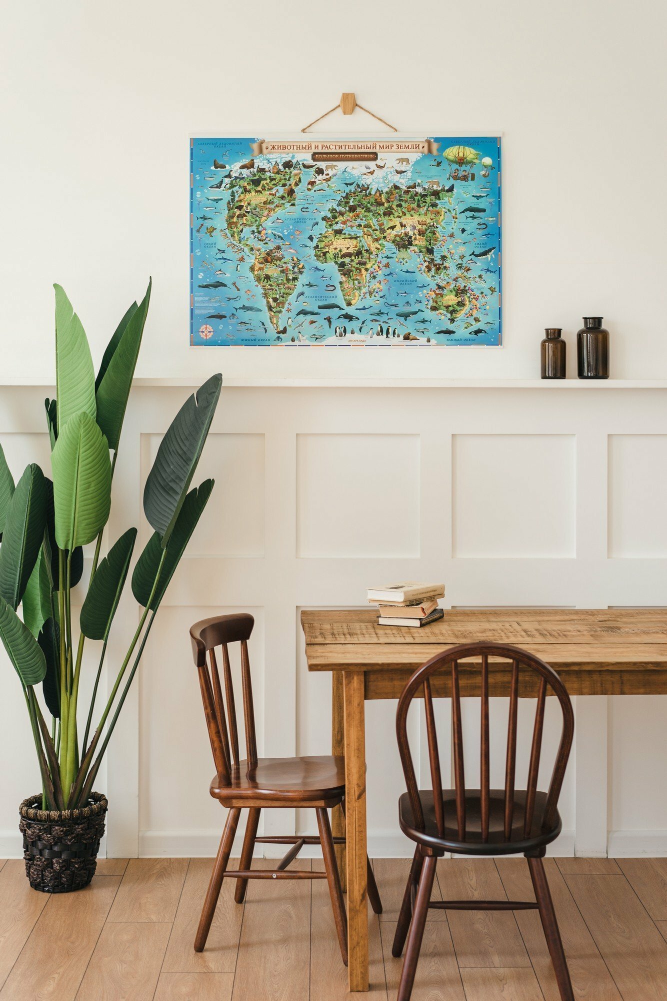 Интерактивная карта Мира для детей Животный и растительный мир Земли, 101 х 69 см, ламинированная, .
