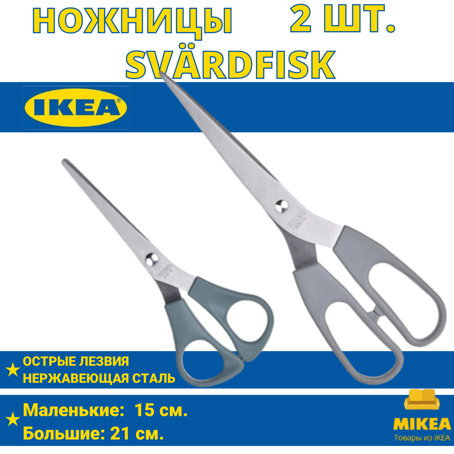 Ножницы, 2 штуки, нержавеющая сталь серый, серо-бирюзовый SVÄRDFISK интересное: