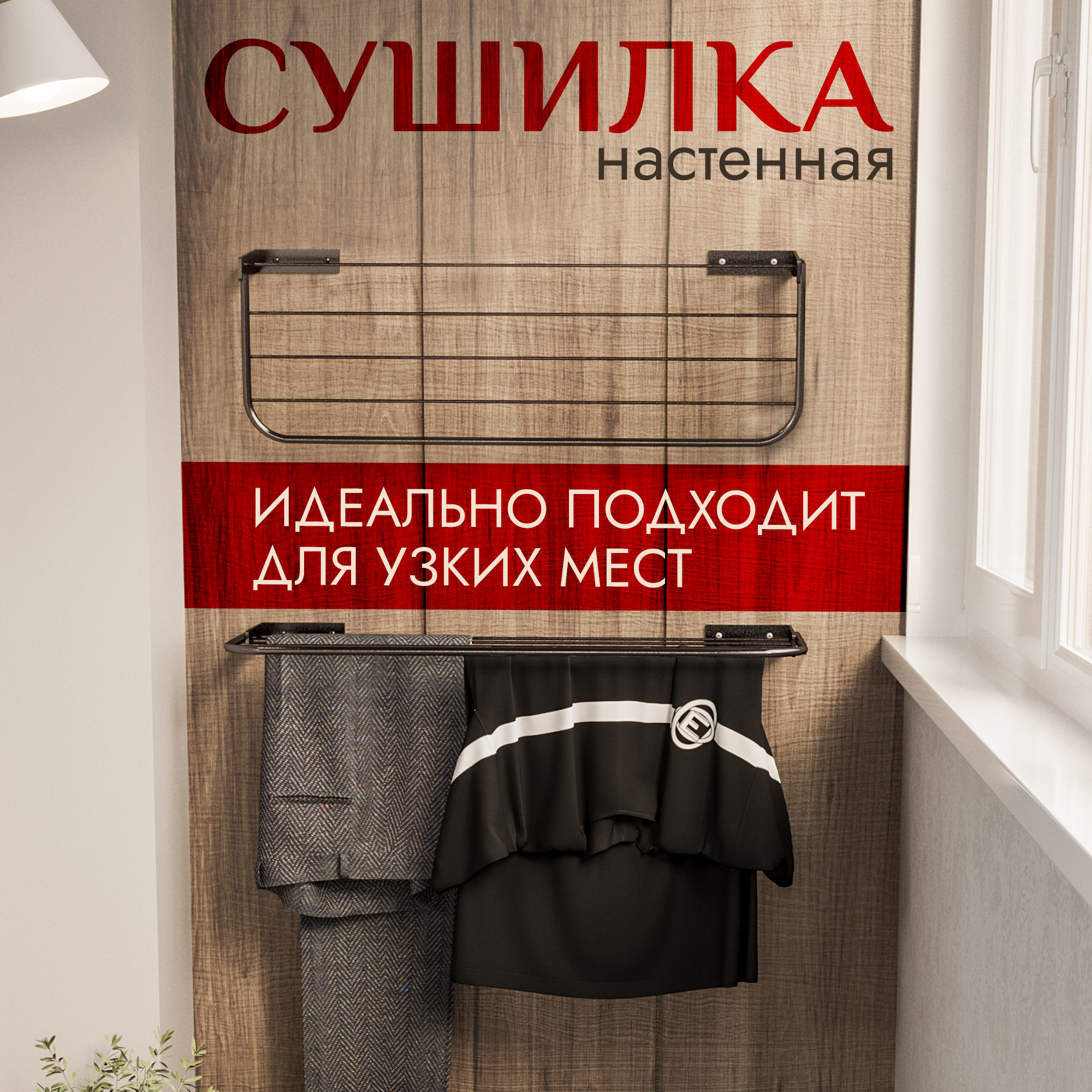 Сушилка для белья на балкон настенная складная Terra Tube
