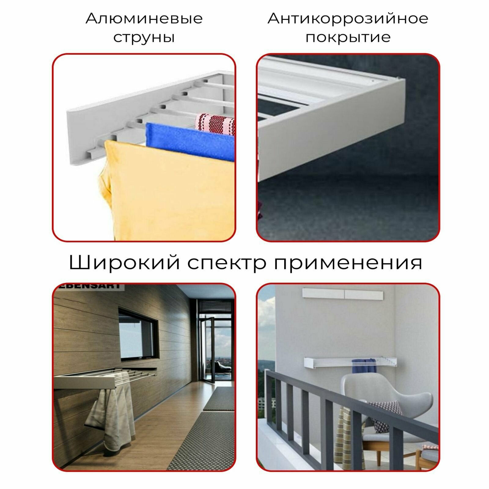 Настенная сушилка для белья Lebensart из металла (5 струн по 80 см.) интересное: