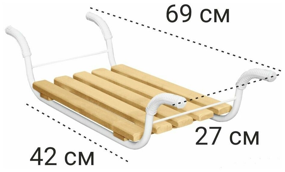 Сиденье на ванну 5-реечное Классик, дерево, металл, 69х27см, с обрезиненным креплением, Nika, СВ2