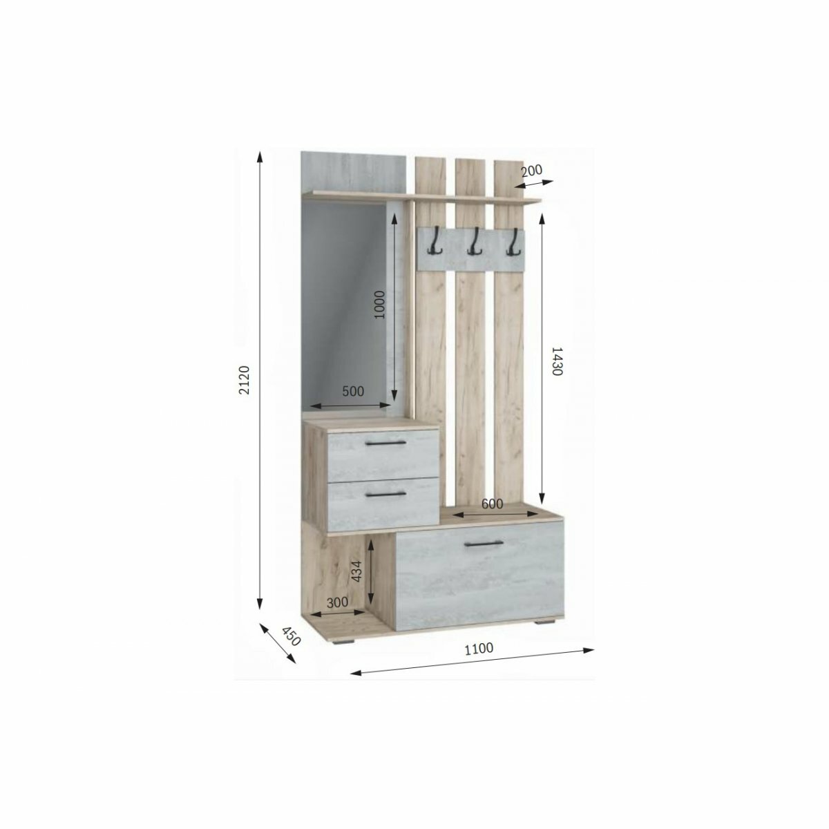 Купить Вешалка "Бостон" ВШ-1 - Дуб крафт серый / Бетонный камень