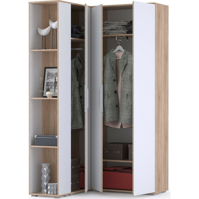 | Состав комплекта | двустворчатый шкаф / открытый стеллаж и - шкаф угловой |