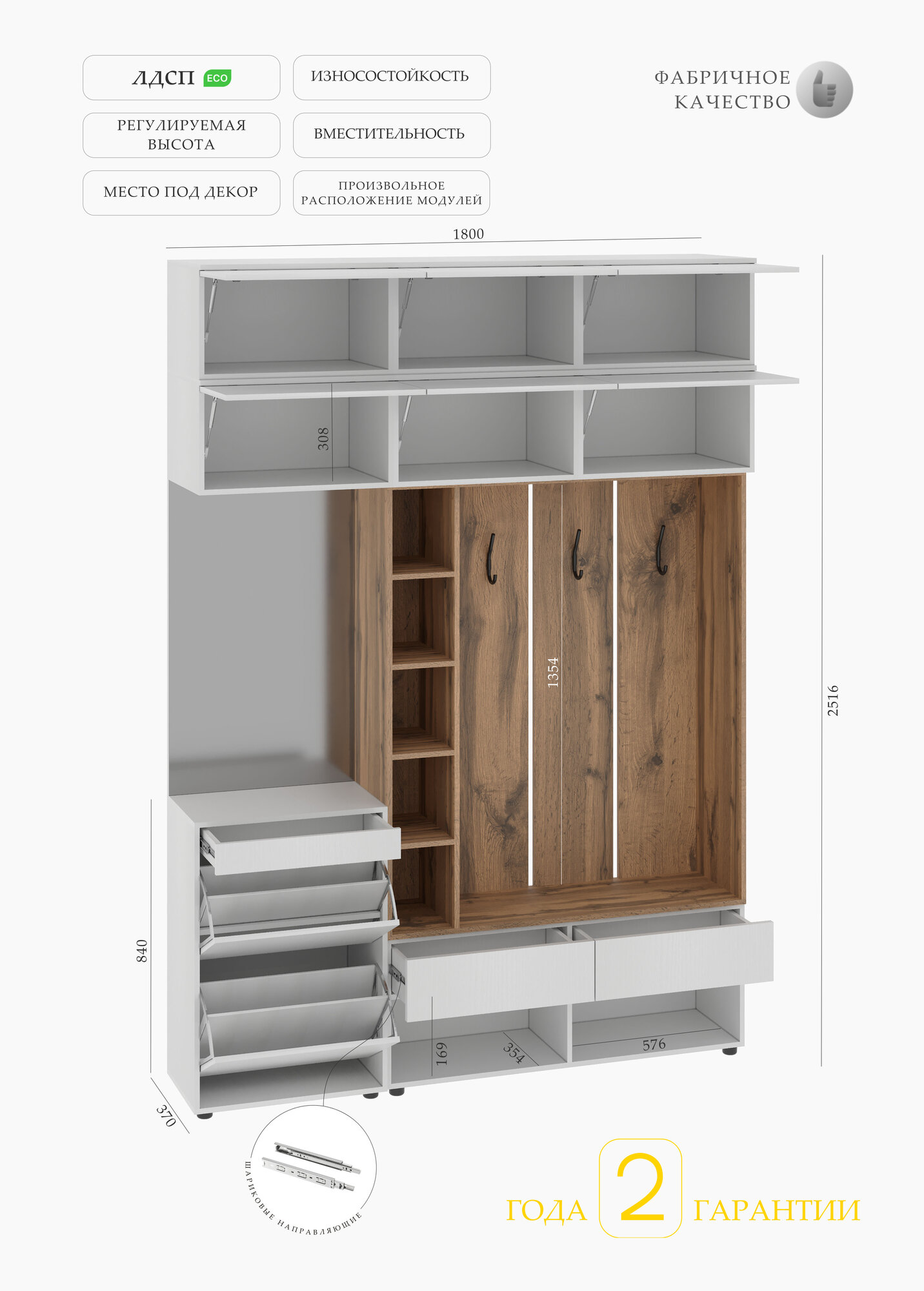 Комплект прихожей "BOSA" K9А с антресолью (Белый) 180*252*37 интересное:
