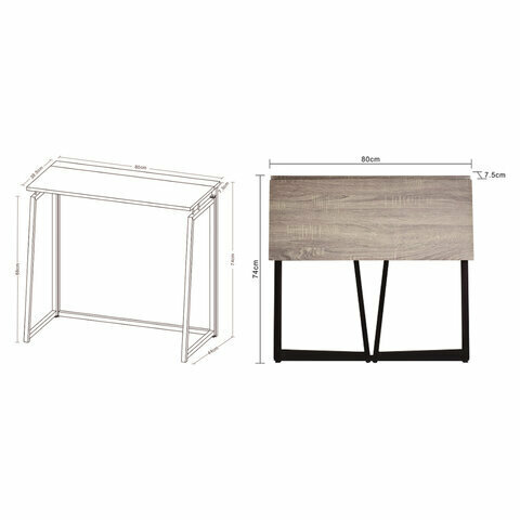 Купить Стол на металлокаркасе Brabix Loft Cd-001, 800х440х740 мм, складной, цвет дуб антик, 641210