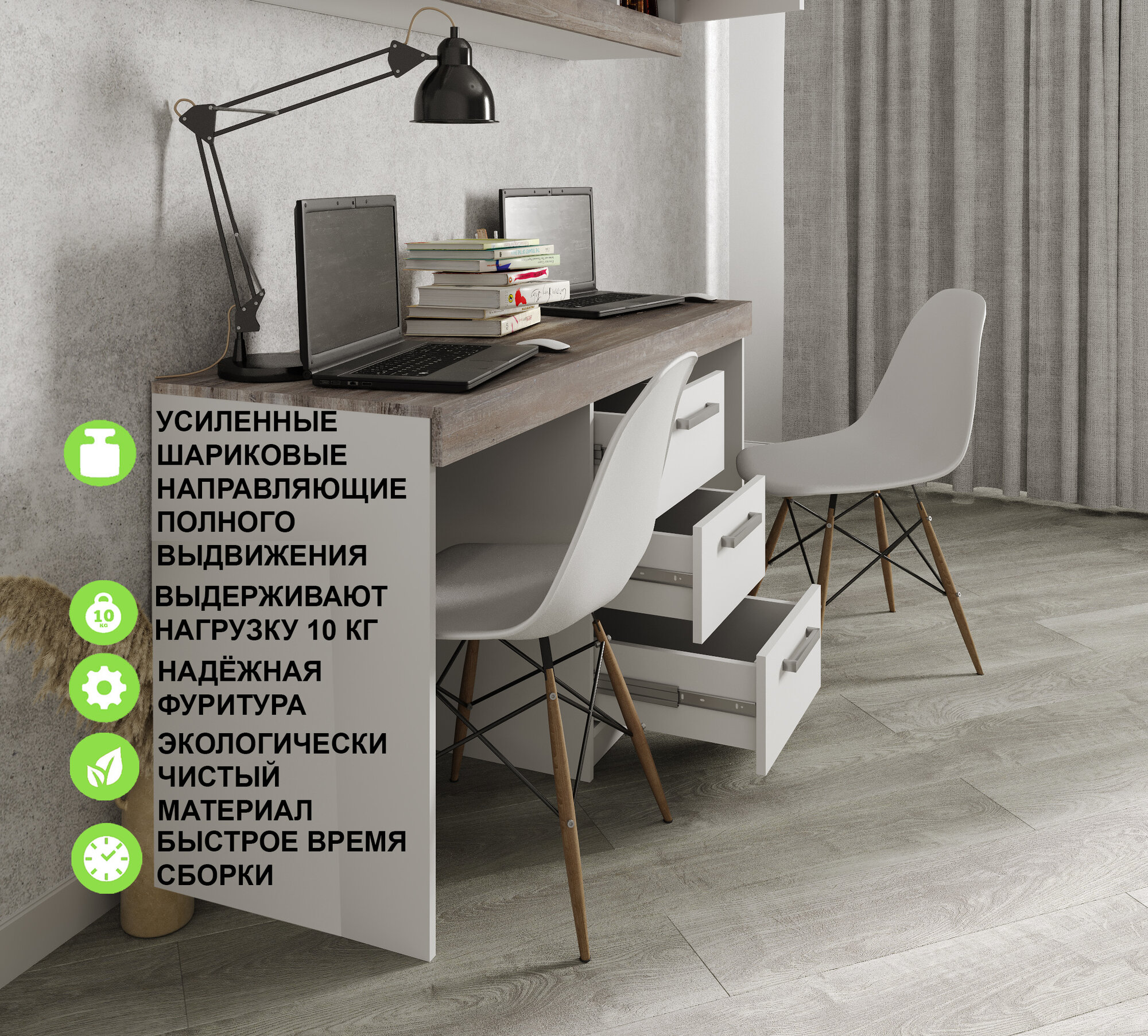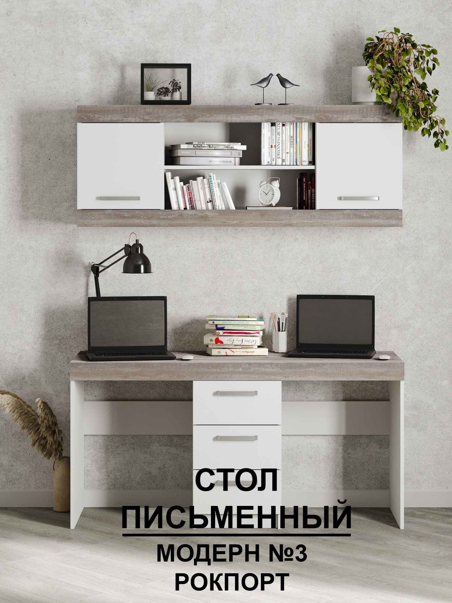 Письменный стол "Модерн" №3, В*Ш*Г (см) 75х150х50, ЛДСП, белый / сосна рокпорт интересное: