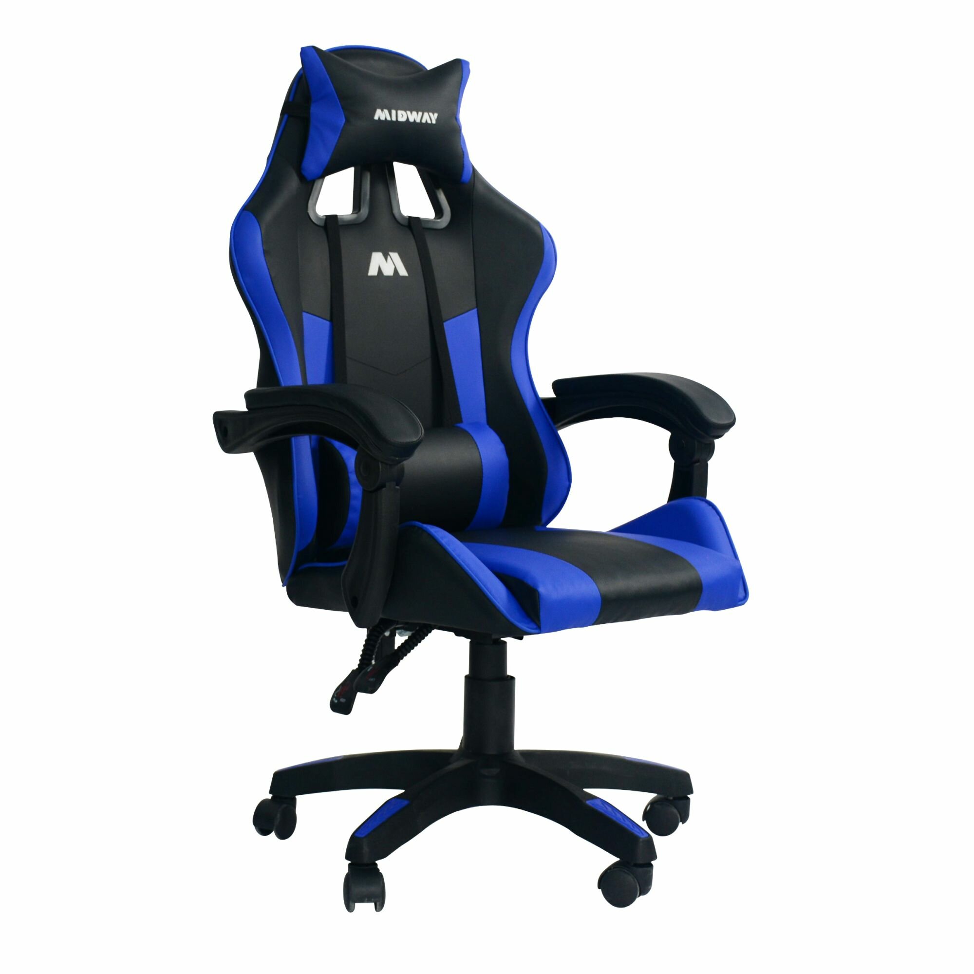 Купить Компьютерное игровое кресло на колёсиках MIDWAY Axe, синий (эргономичное, с обивкой из экокожи)