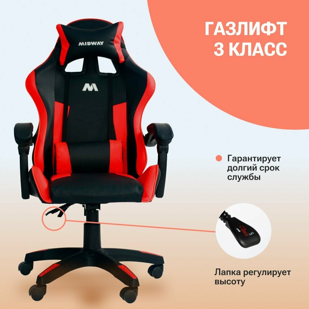 Купить Компьютерное игровое кресло на колёсиках MIDWAY Axe, красное (эргономичное, с обивкой из экокожи)
