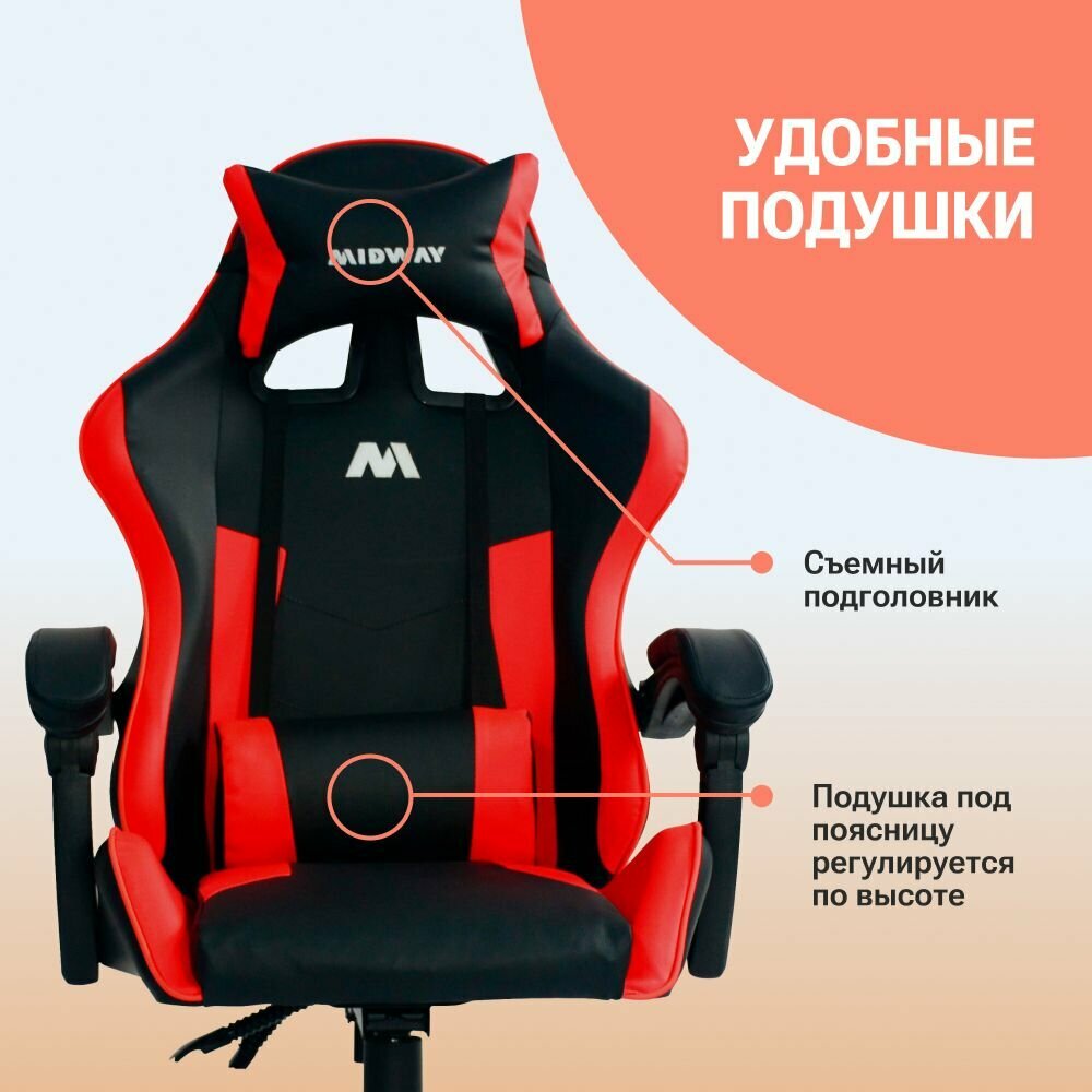 СохранитьКомпьютерное игровое кресло на колёсиках MIDWAY Axe, красное (эргономичное, с обивкой из экокожи) интересное: