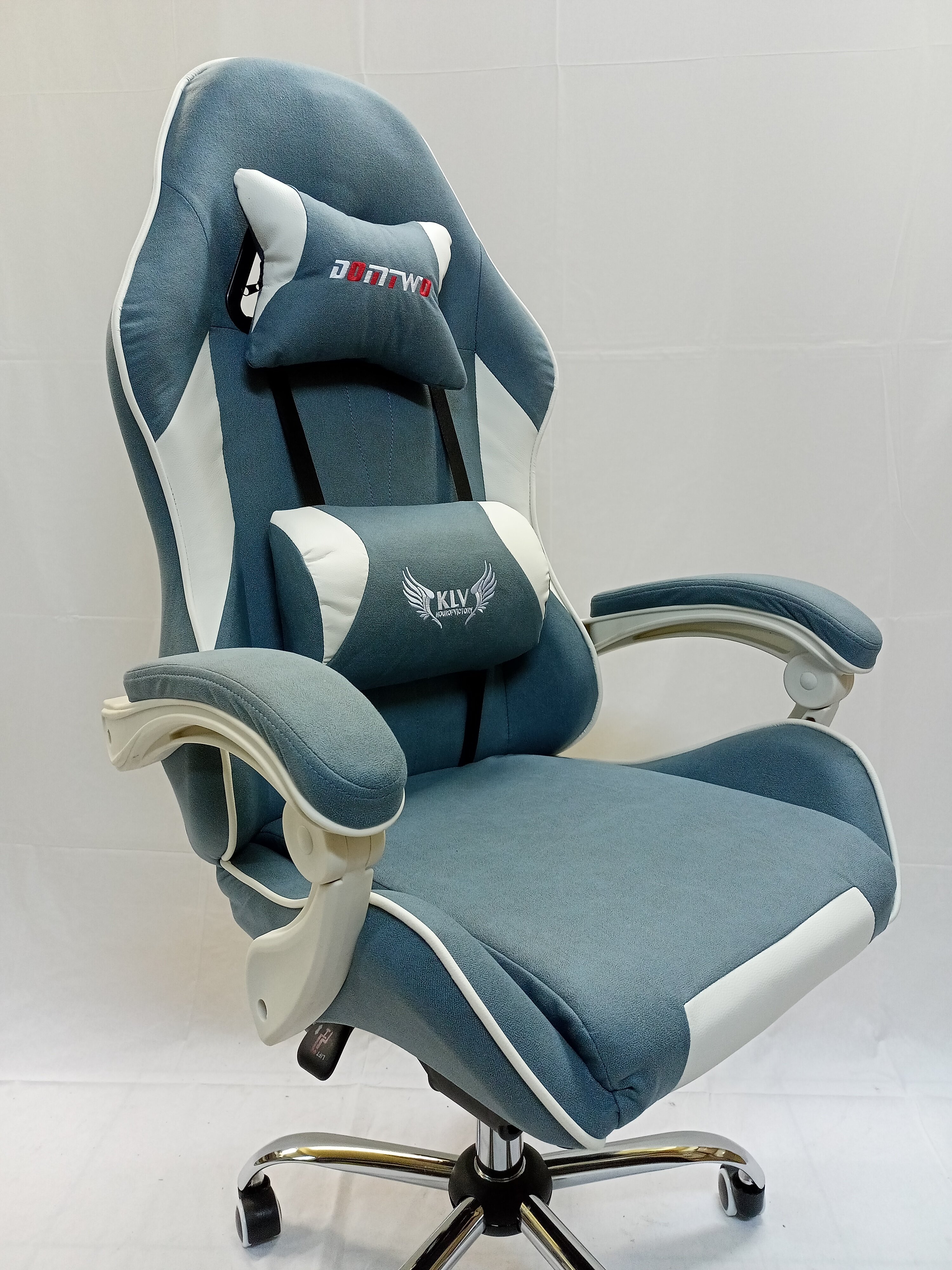 Купить Игровое компьютерное кресло. Синяя ткань, белый кожзам, подножка. Кресло руководителя. Двойной поролон. Модель 308