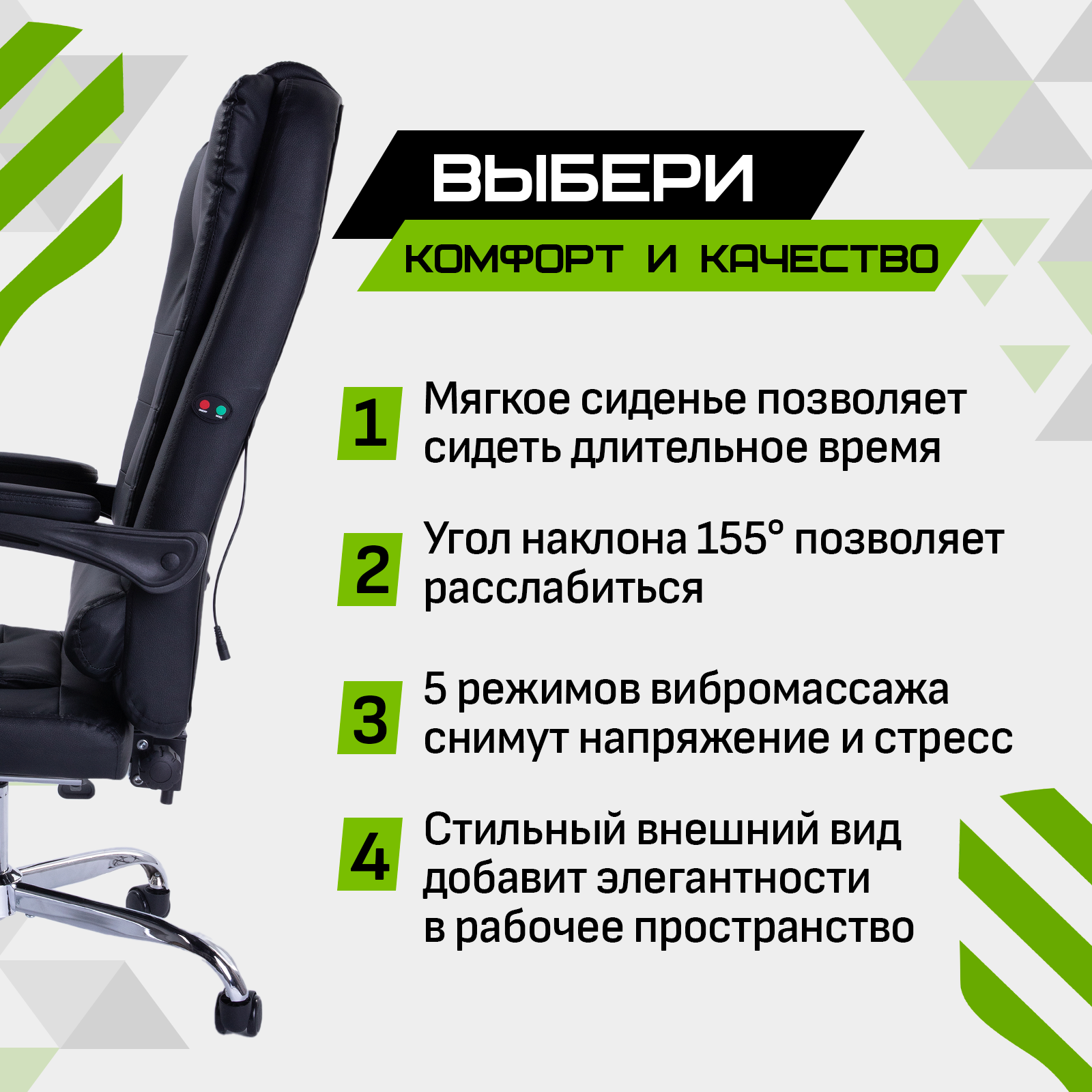 Купить Кресло компьютерное черное кожа для дома и офиса FRANDER с вибромассажем