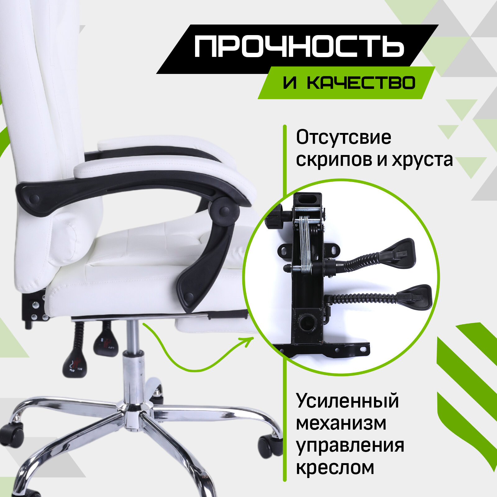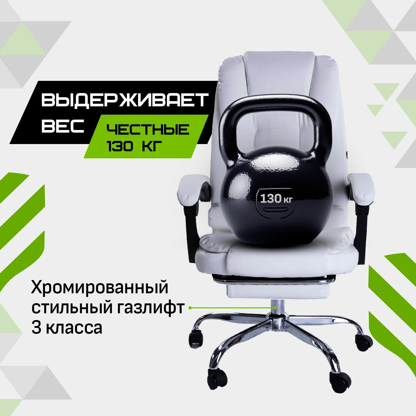 Кресло компьютерное для дома и офиса белое кожа FRANDER с вибромассажем интересное: