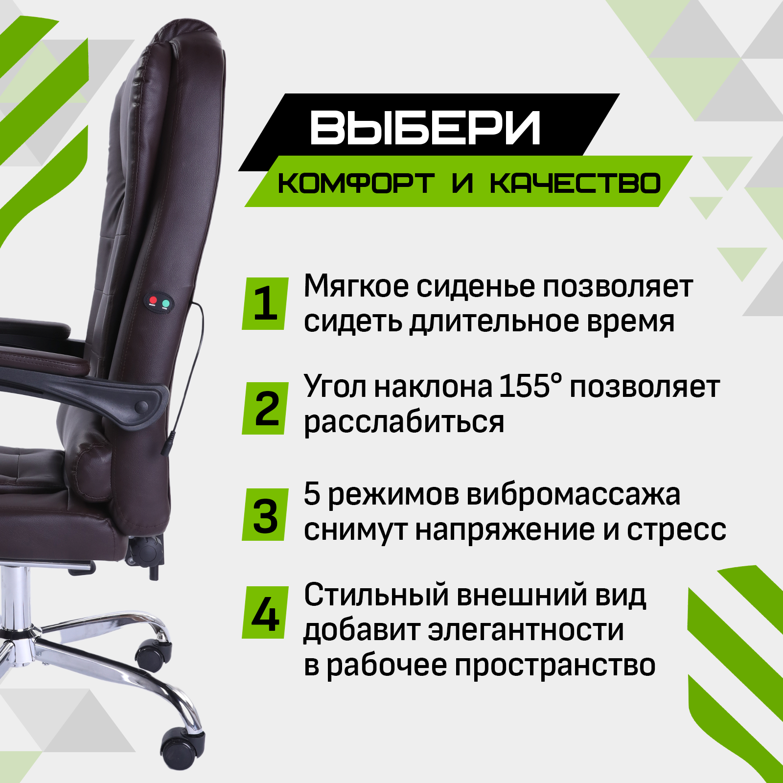 Кресло компьютерное для дома и офиса коричневое кожа FRANDER с вибромассажем интересное: