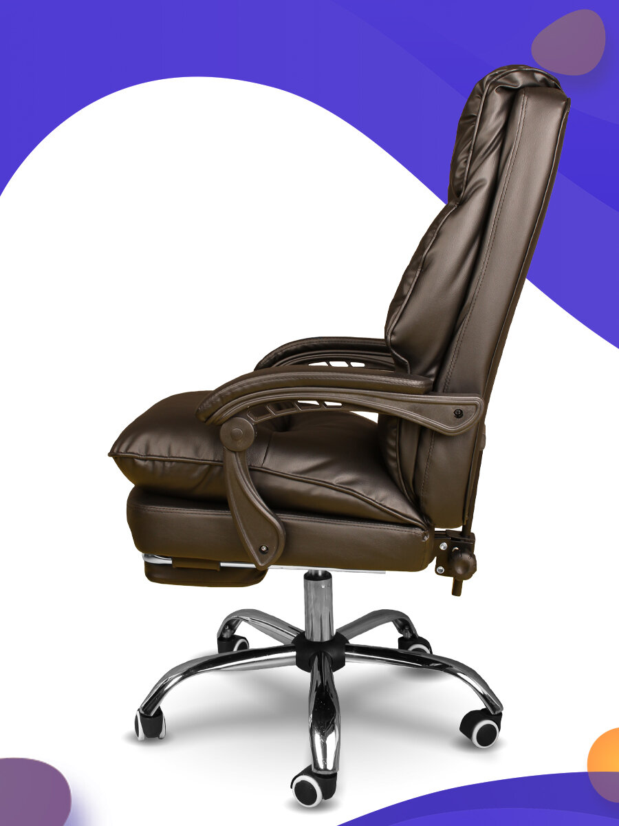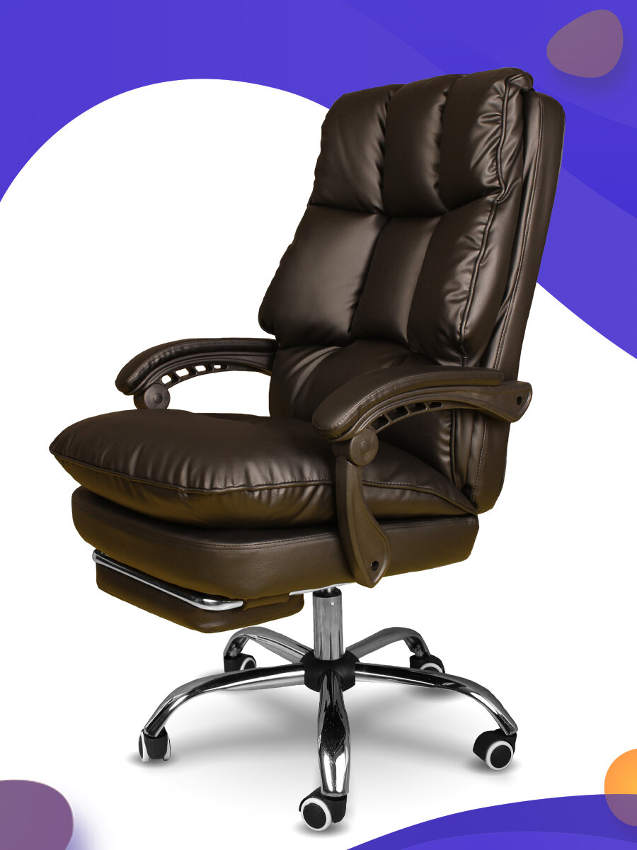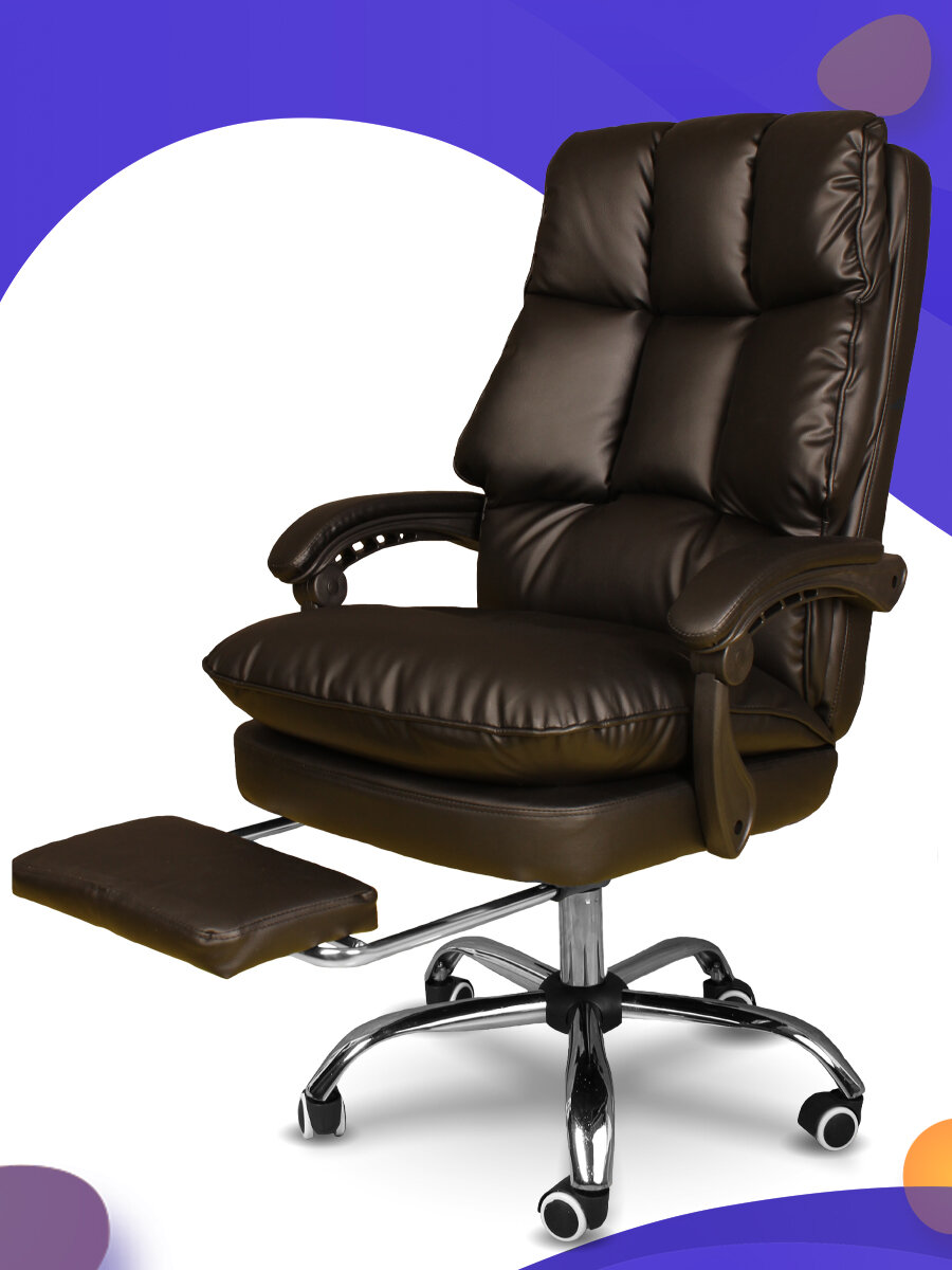 Купить "Кресло для дома и работы" - мягкое компьютерное кресло с подставкой под ноги из экокожи, цвет коричневый