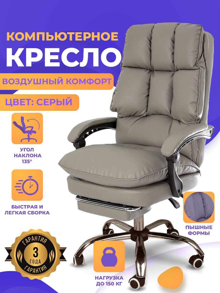 Купить "Кресло для дома и работы" - мягкое компьютерное кресло с подставкой под ноги из экокожи, цвет серый