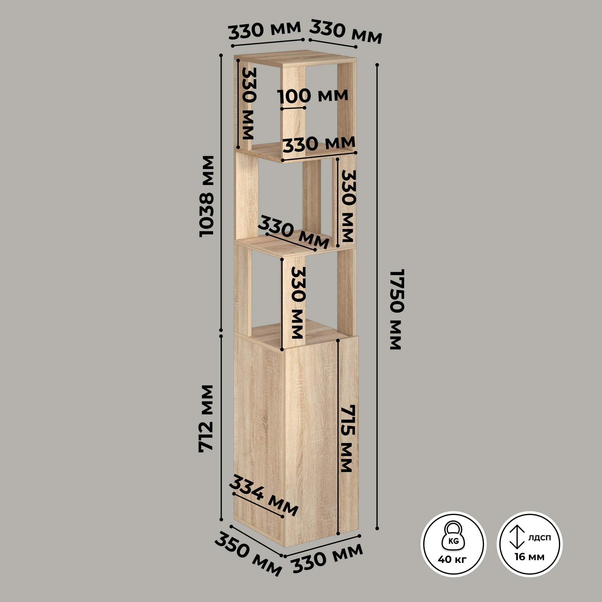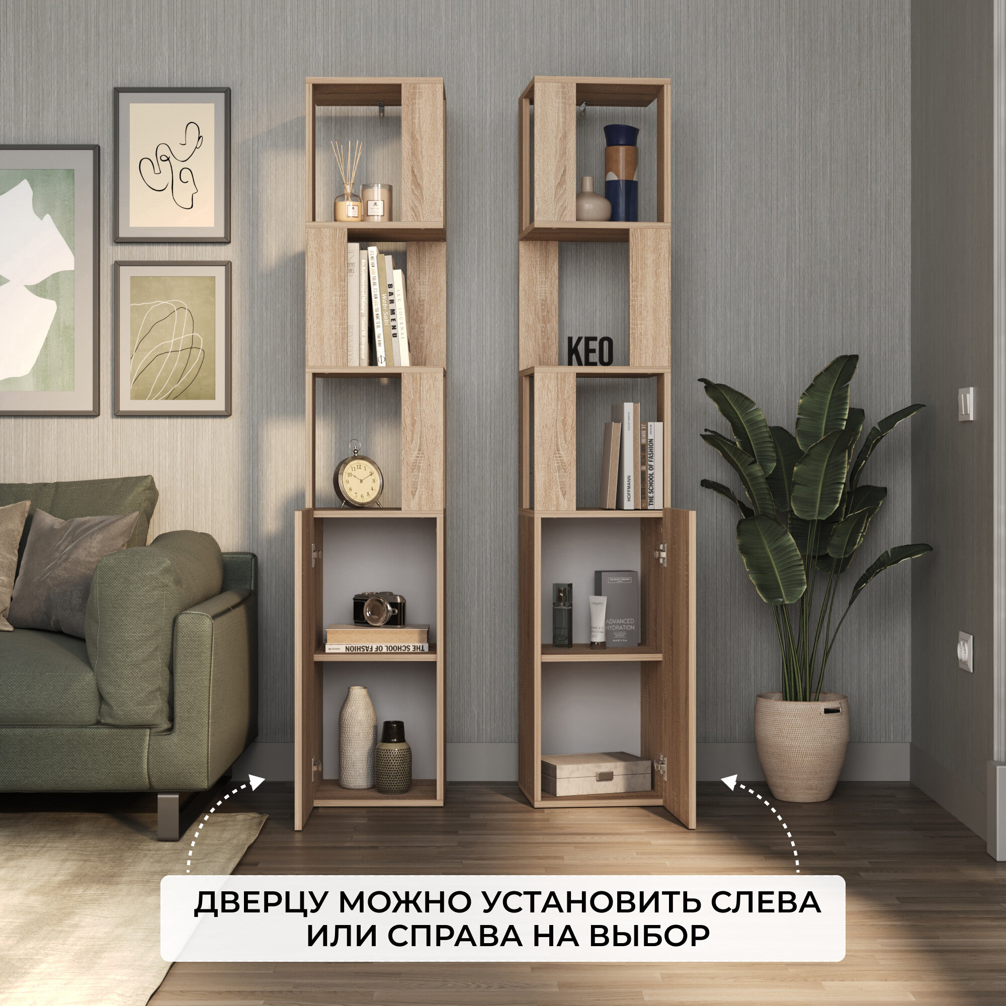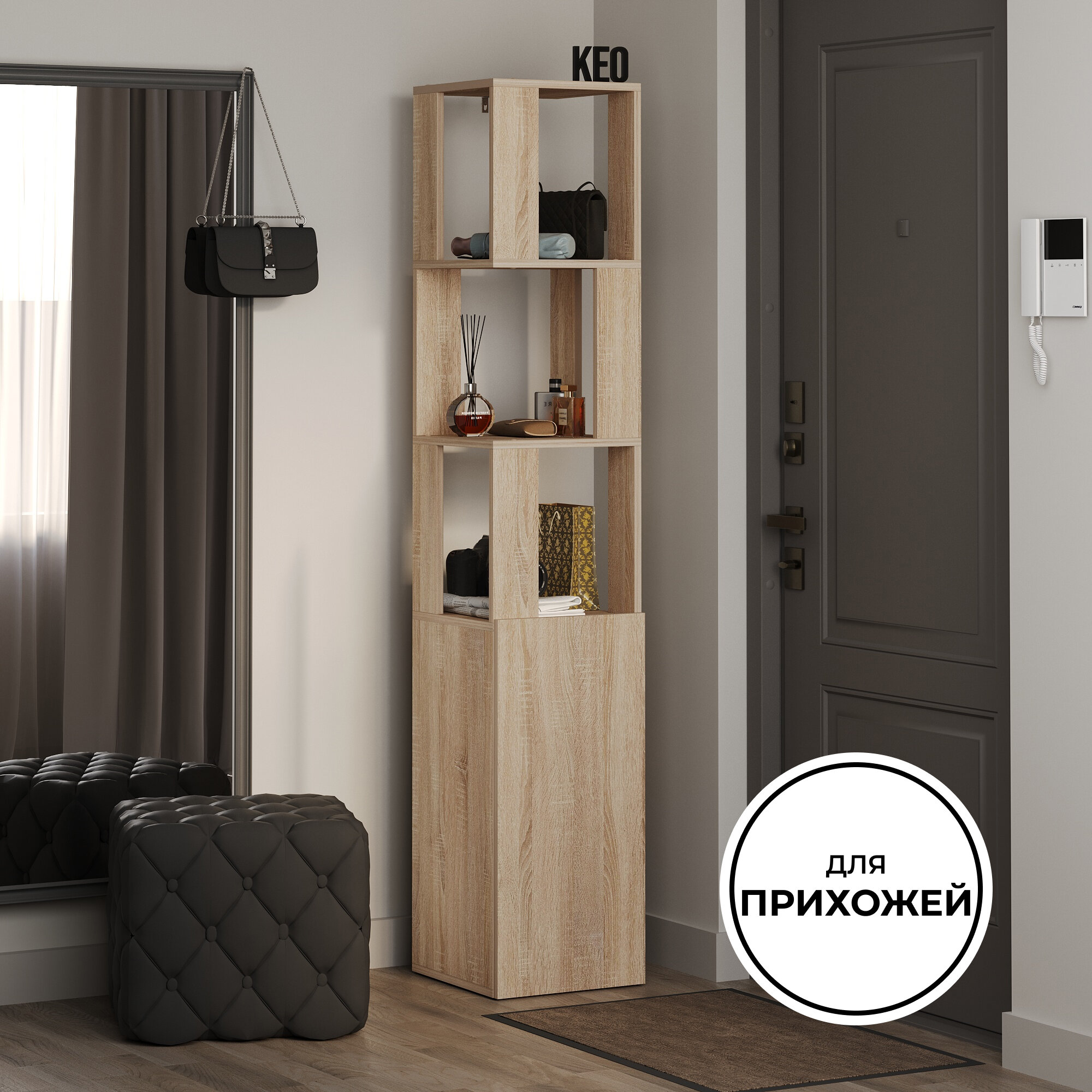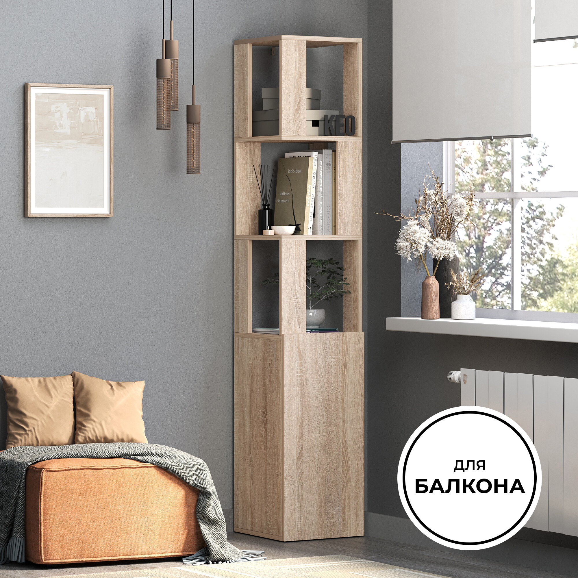 Стеллаж напольный Кео СТЖ-267 сонома высокий узкий с дверцей для книг в гостиную ванную прихожую на балкон 1750х350х330 мм интересное: