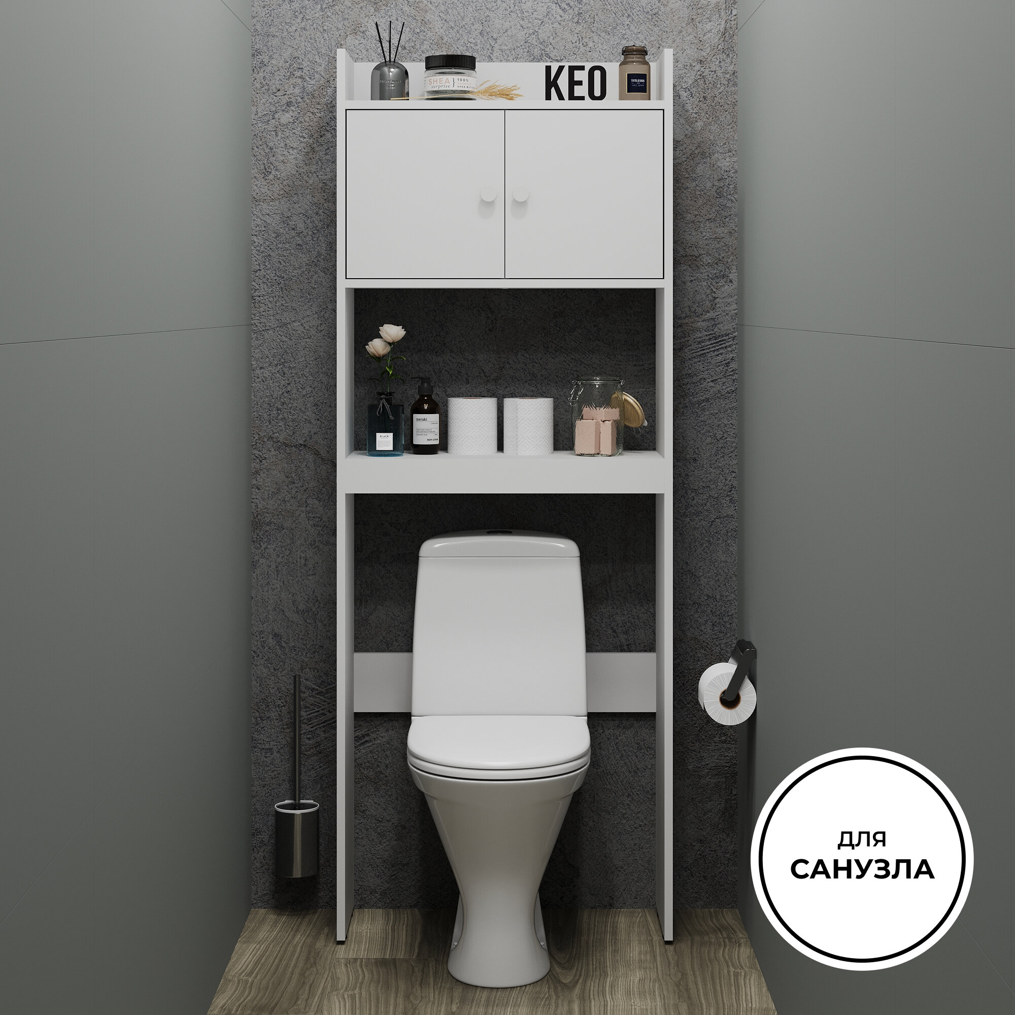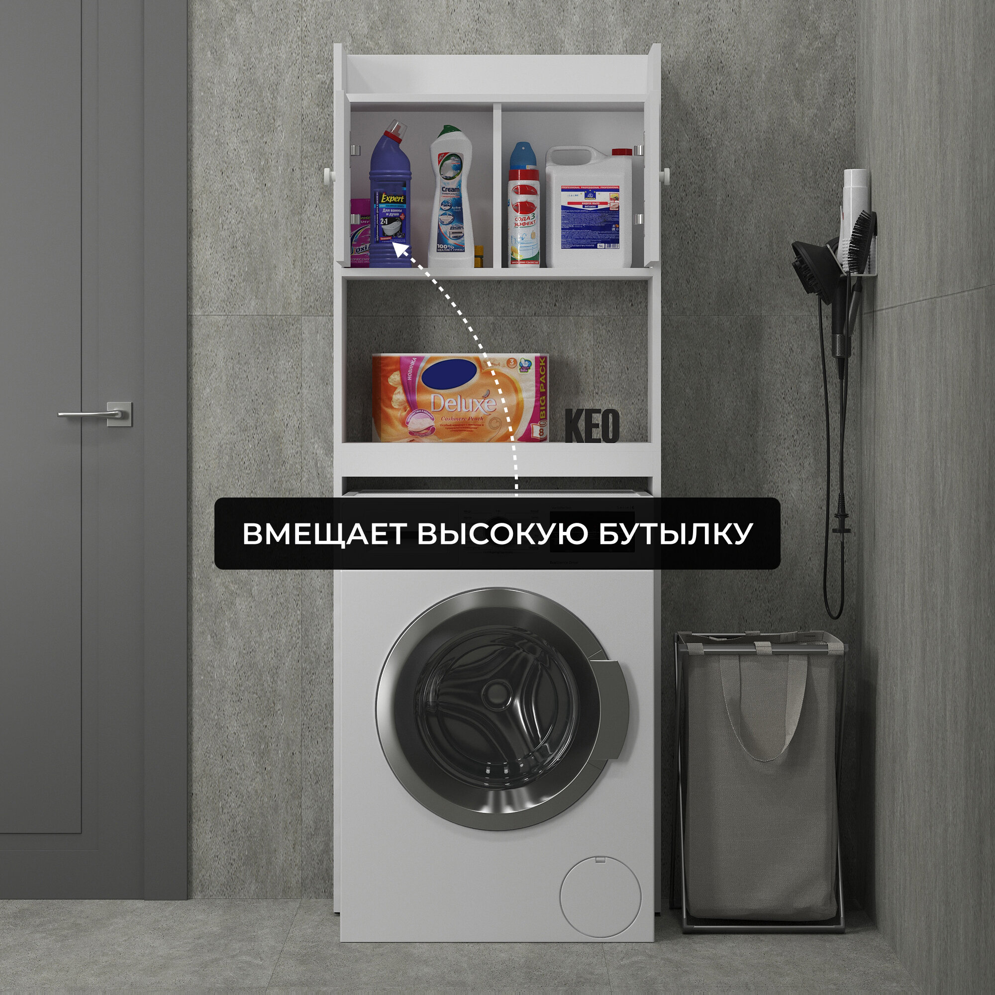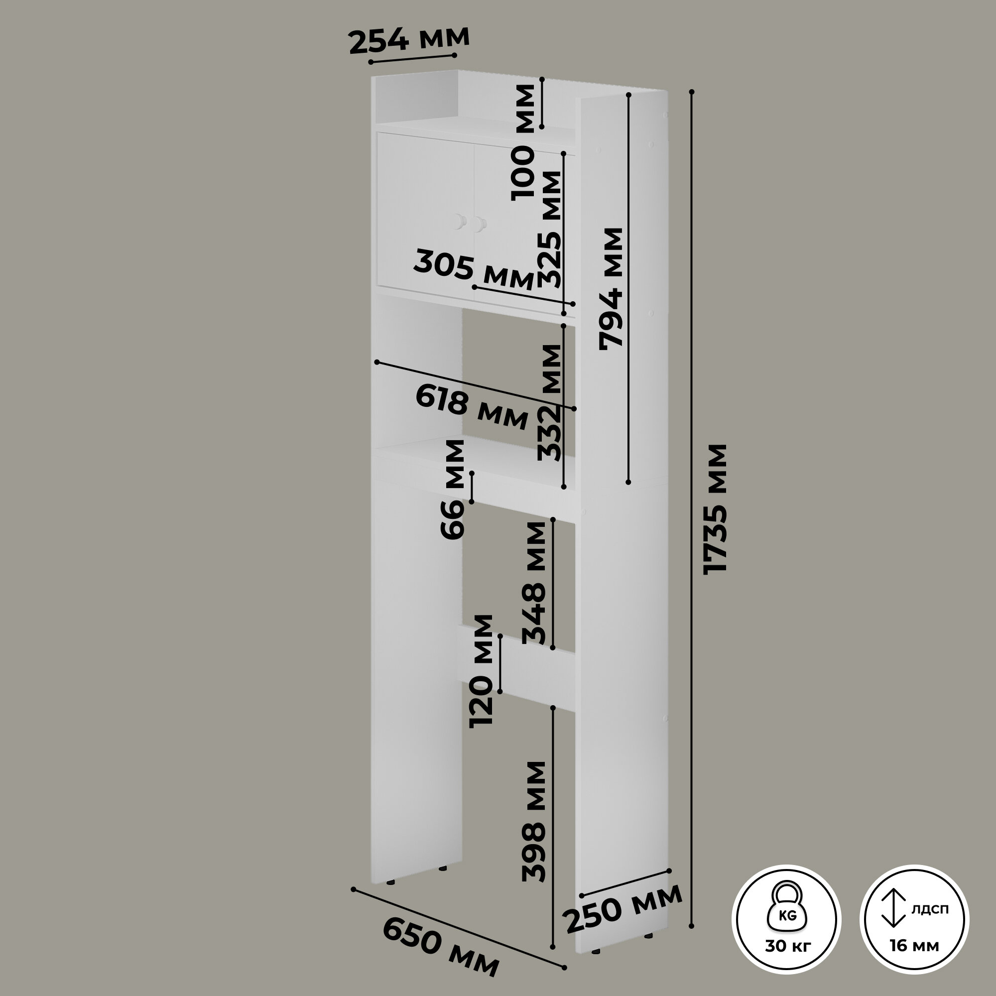 Стеллаж напольный Кео СТЖ-202 белый высокий узкий с распашными дверцами и полками для ванной над стиральной машиной 1735х254х650 мм интересное: