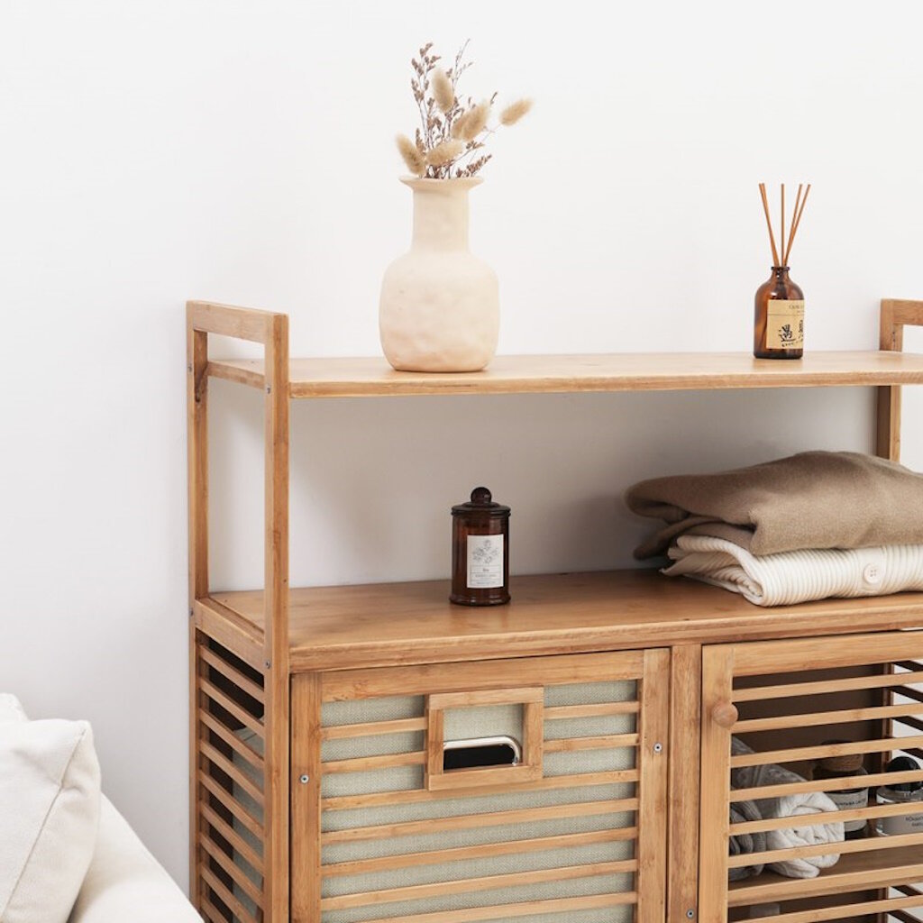 Стеллаж для ванной с корзинами для белья Bambuchka из бамбука, Этажерка для ванной, размер 80х30х72 см