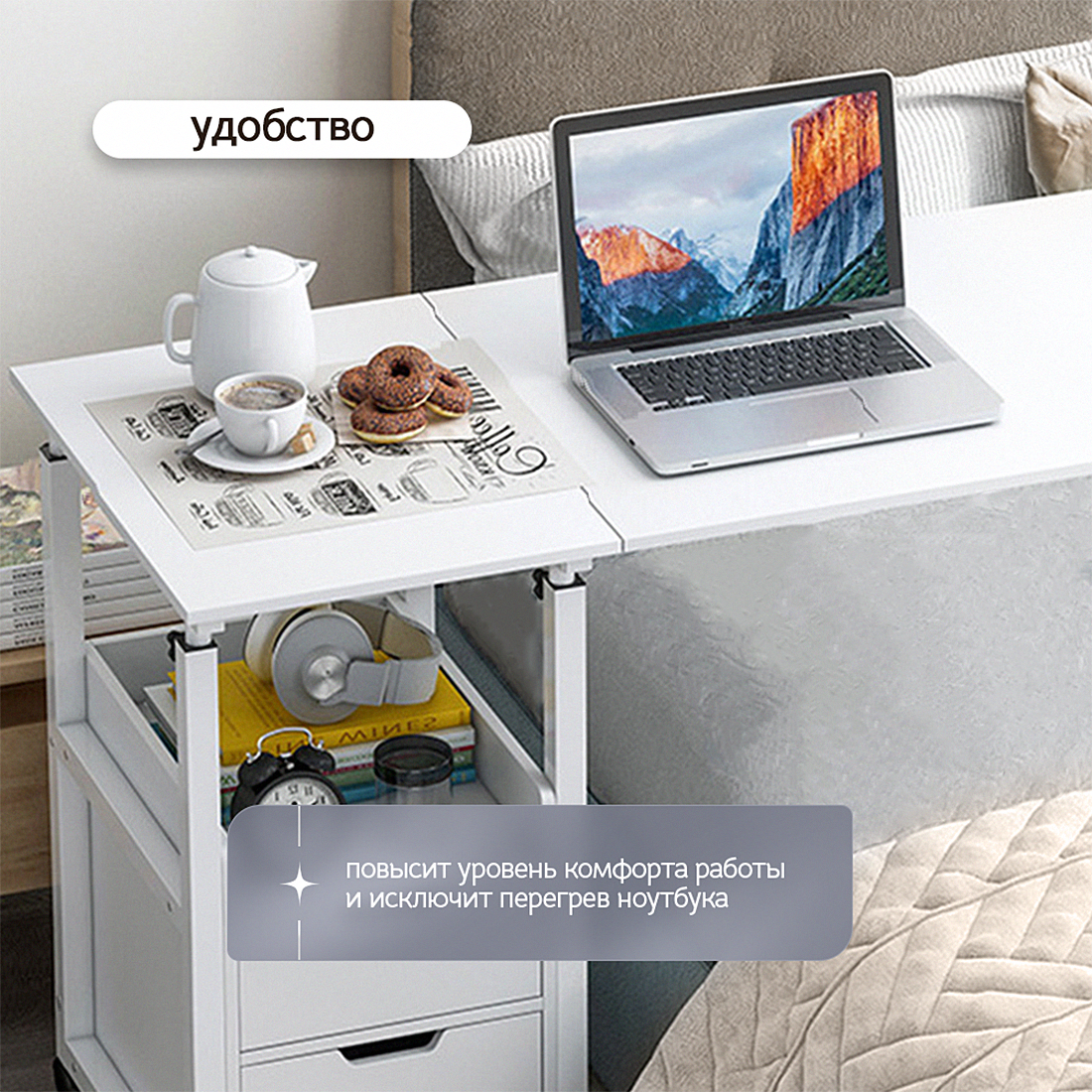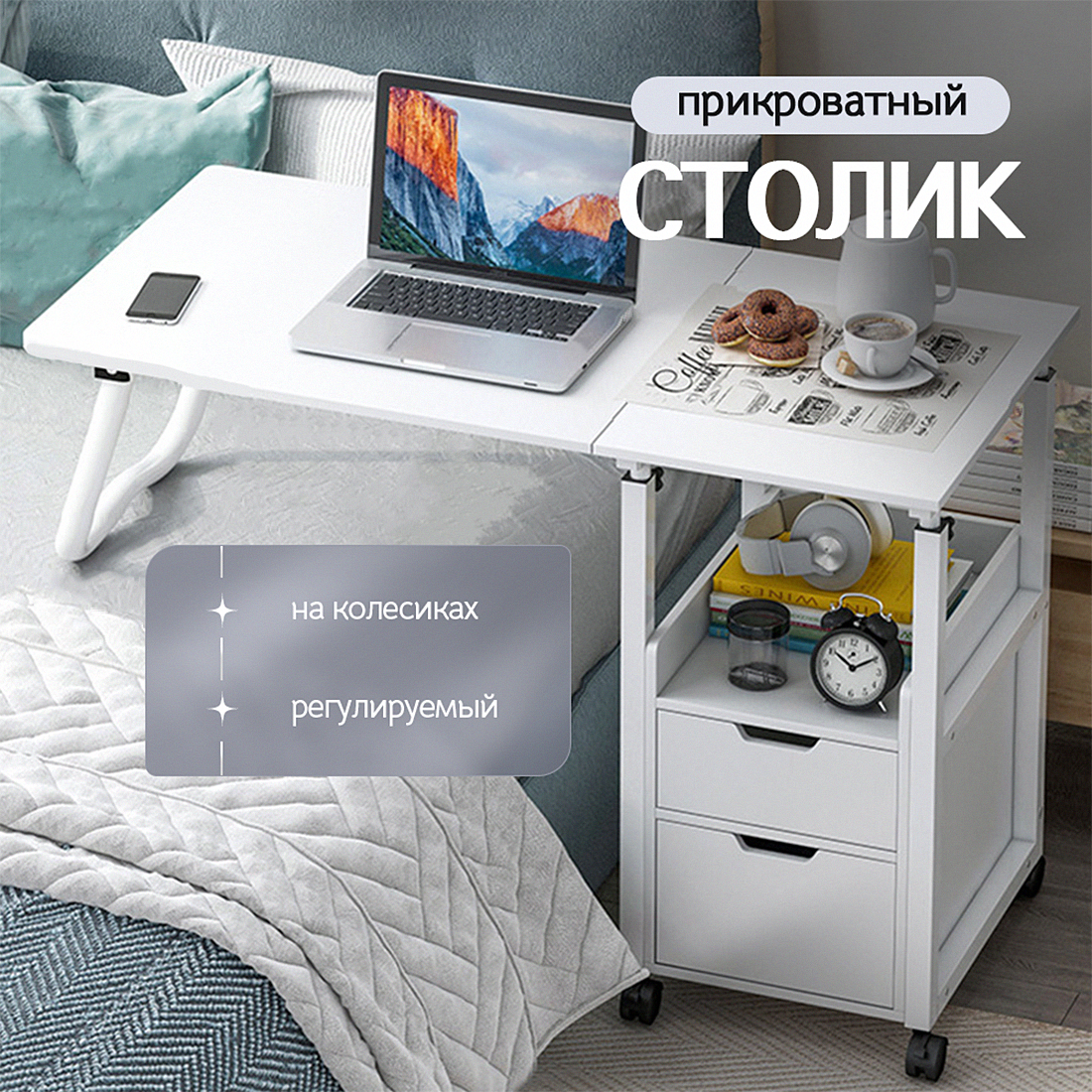 СохранитьСтол трансформер для ноутбука Oqqi, прикроватный, с ящиками, на колесиках, белый, 100х40х670-88 см интересное: