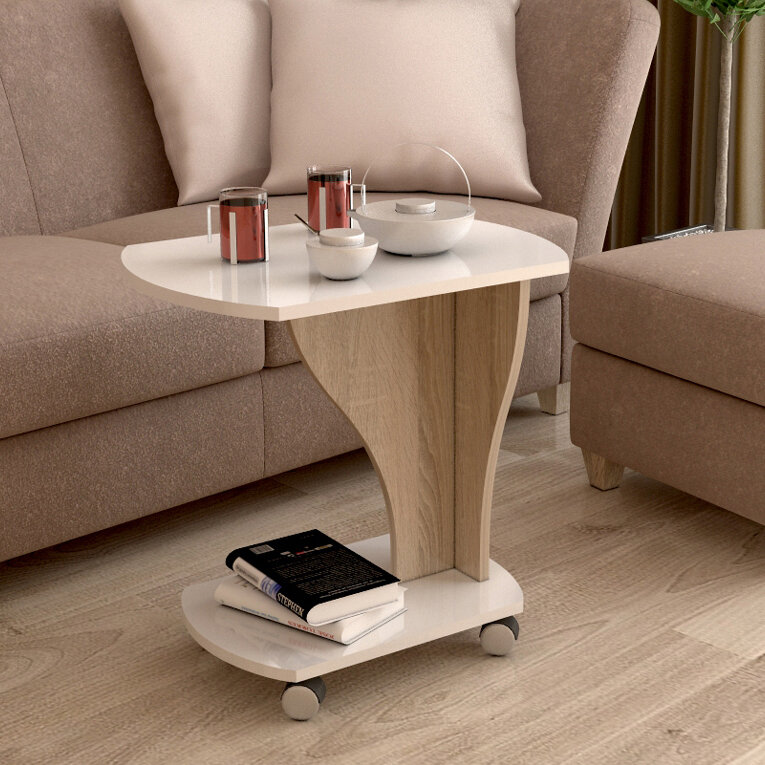 Журнальный столик на колесах "Уют", белый/сонома, 55*40*55 см интересное: