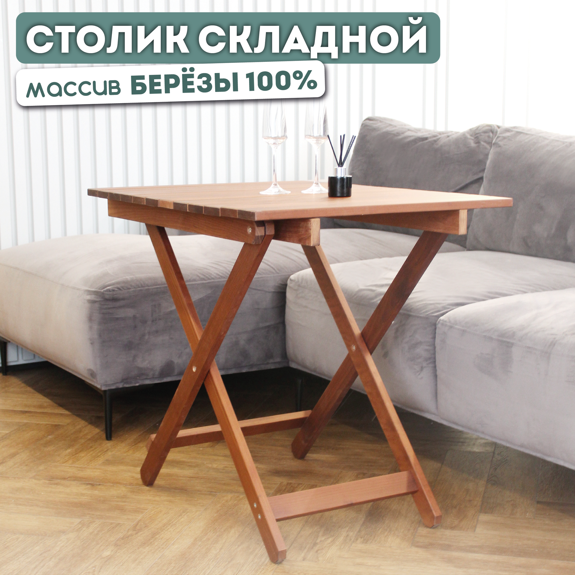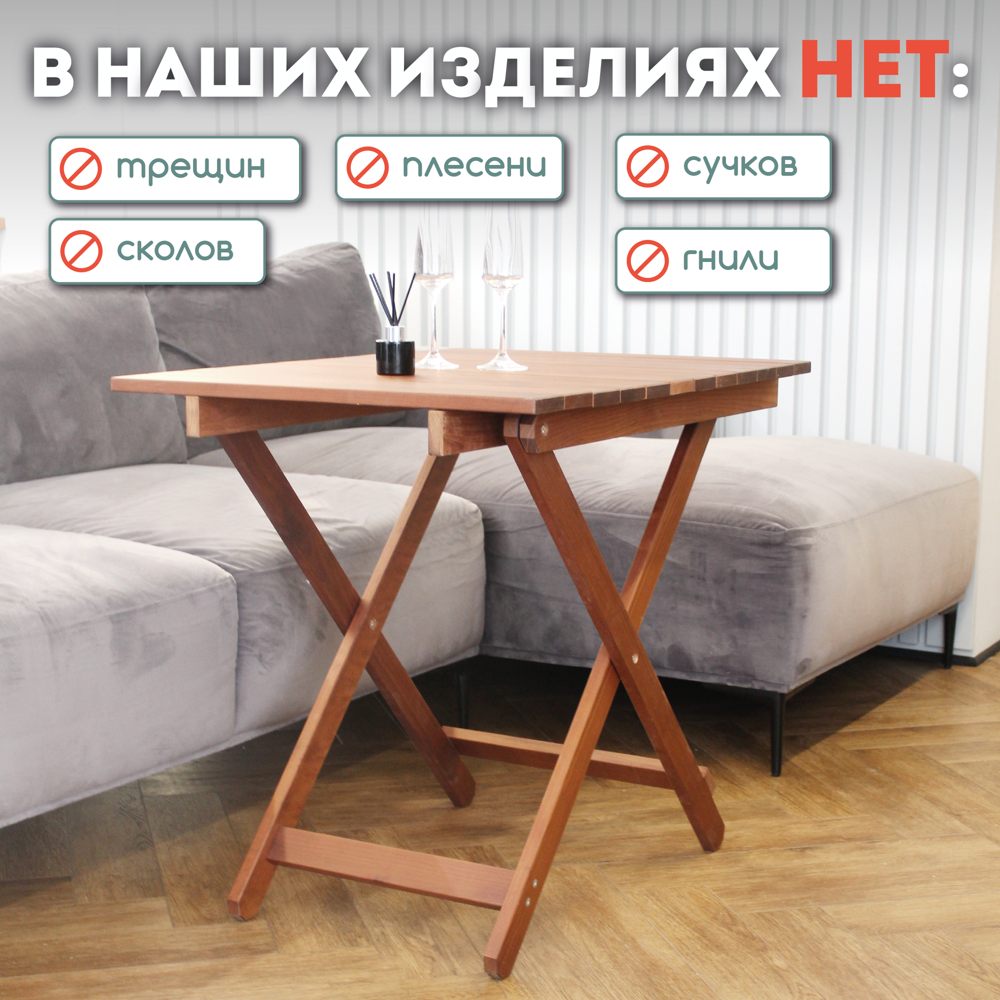 Стол журнальный 60х50 высота 63, складной деревянный для дома, для улицы, бани, на балкона, покрыт лаком Premium