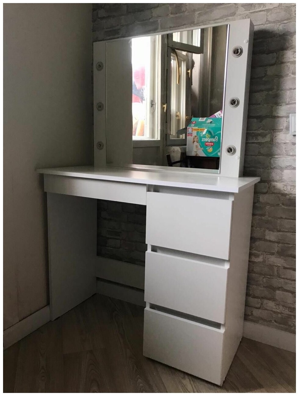 Стол косметический 3 ящика с подсветкой (90х40х136 см), ЛДСП EGGER Белый интересное: