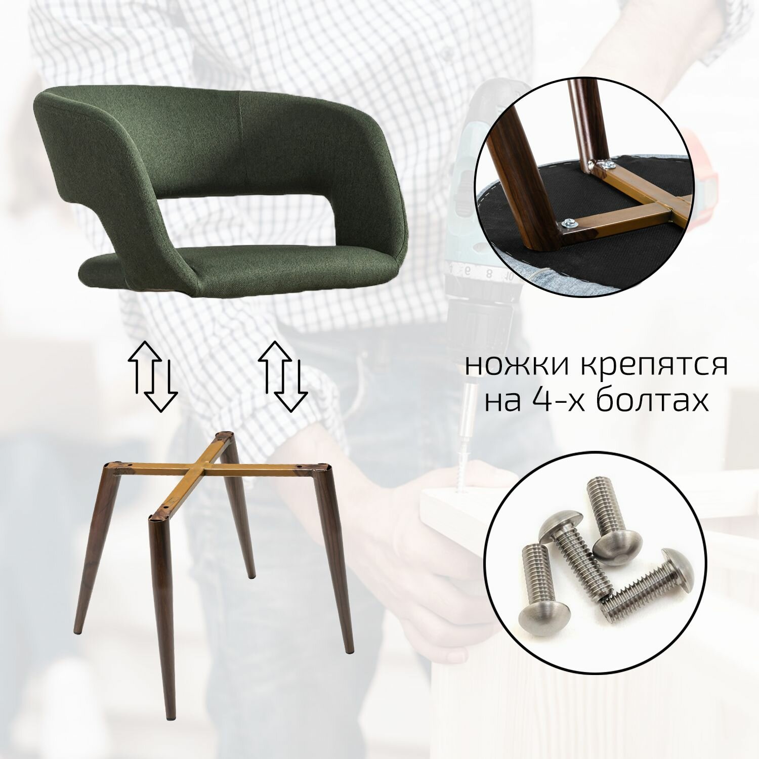 Стул для кухни премиум, стул кухонный Hugter Темно-зеленый + Ножки темный орех