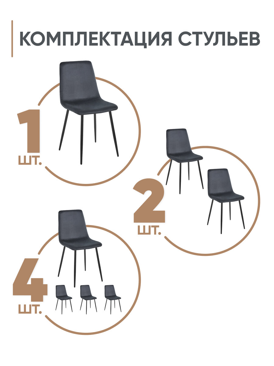Купить Стул со спинкой мягкий велюровый, комплект 4 шт, цвет черный