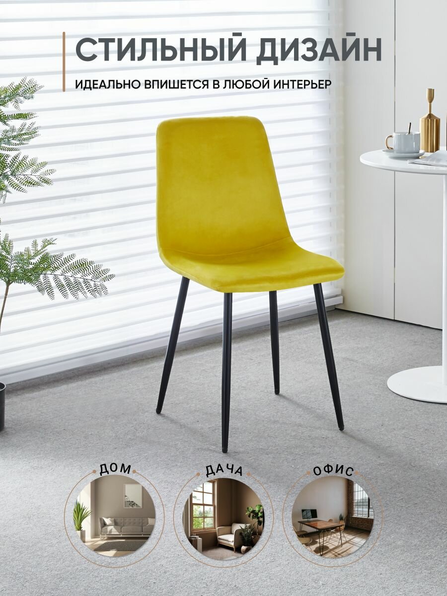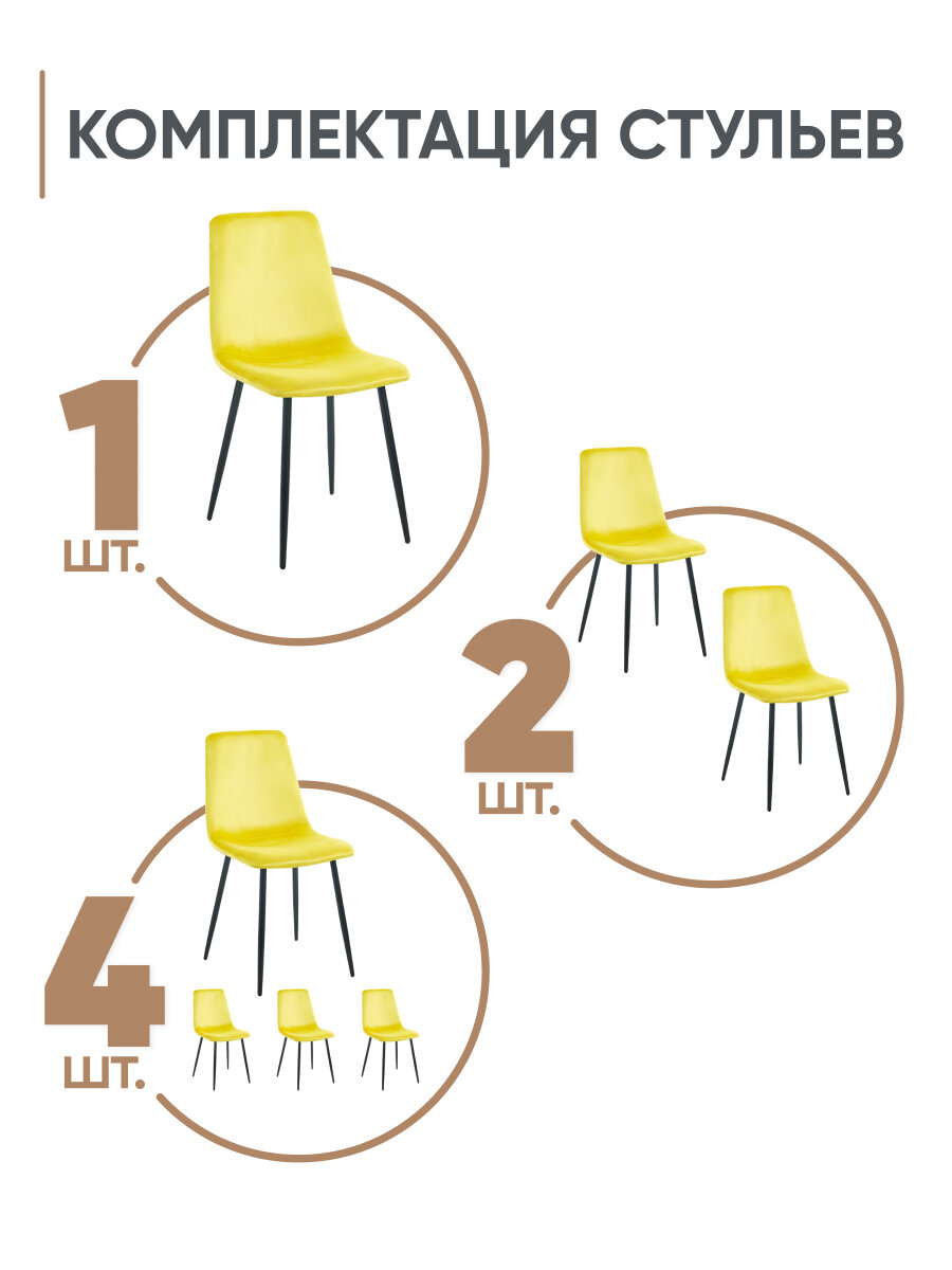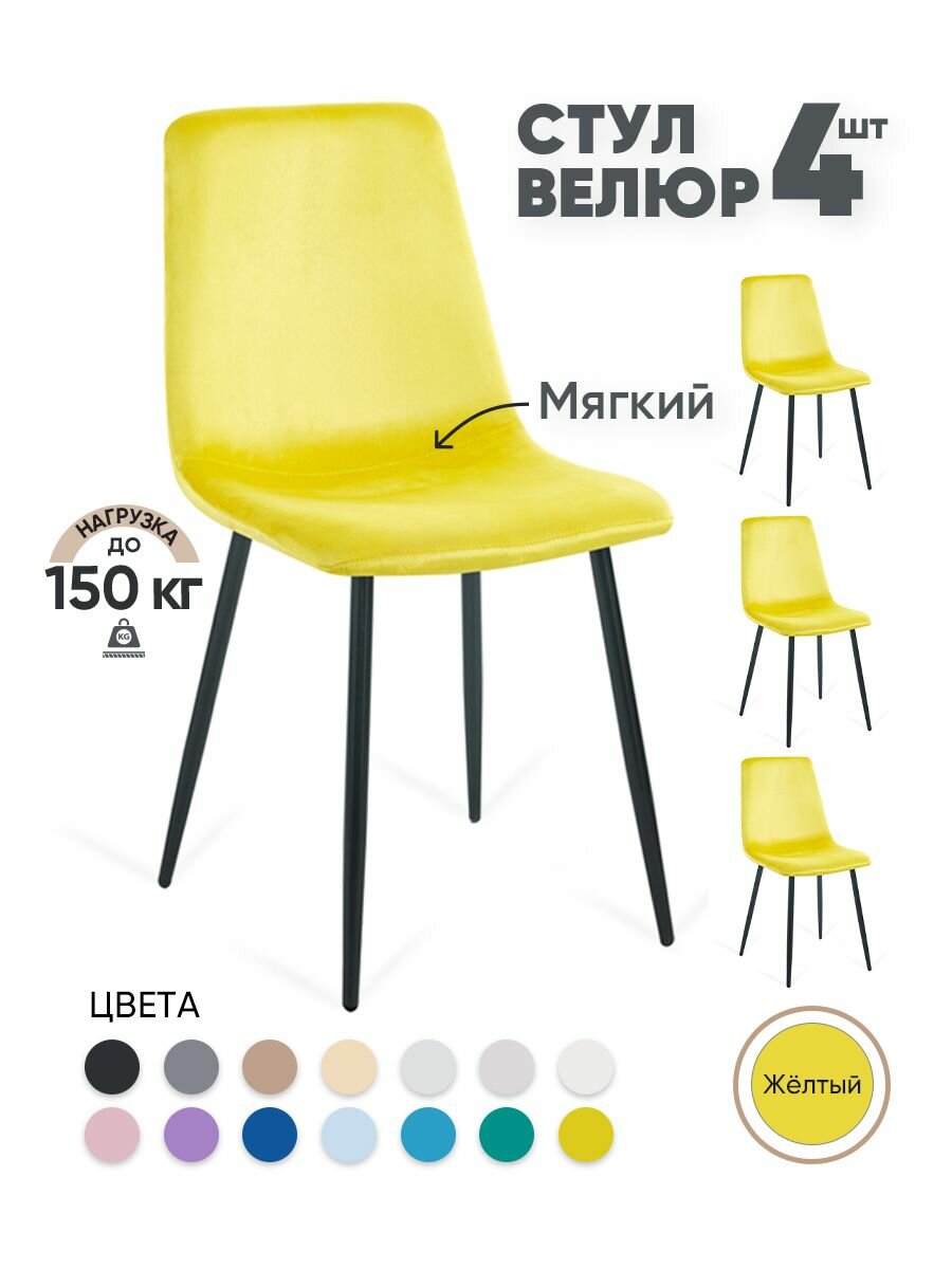 Купить Стул со спинкой мягкий велюровый, комплект 4 шт, цвет желтый