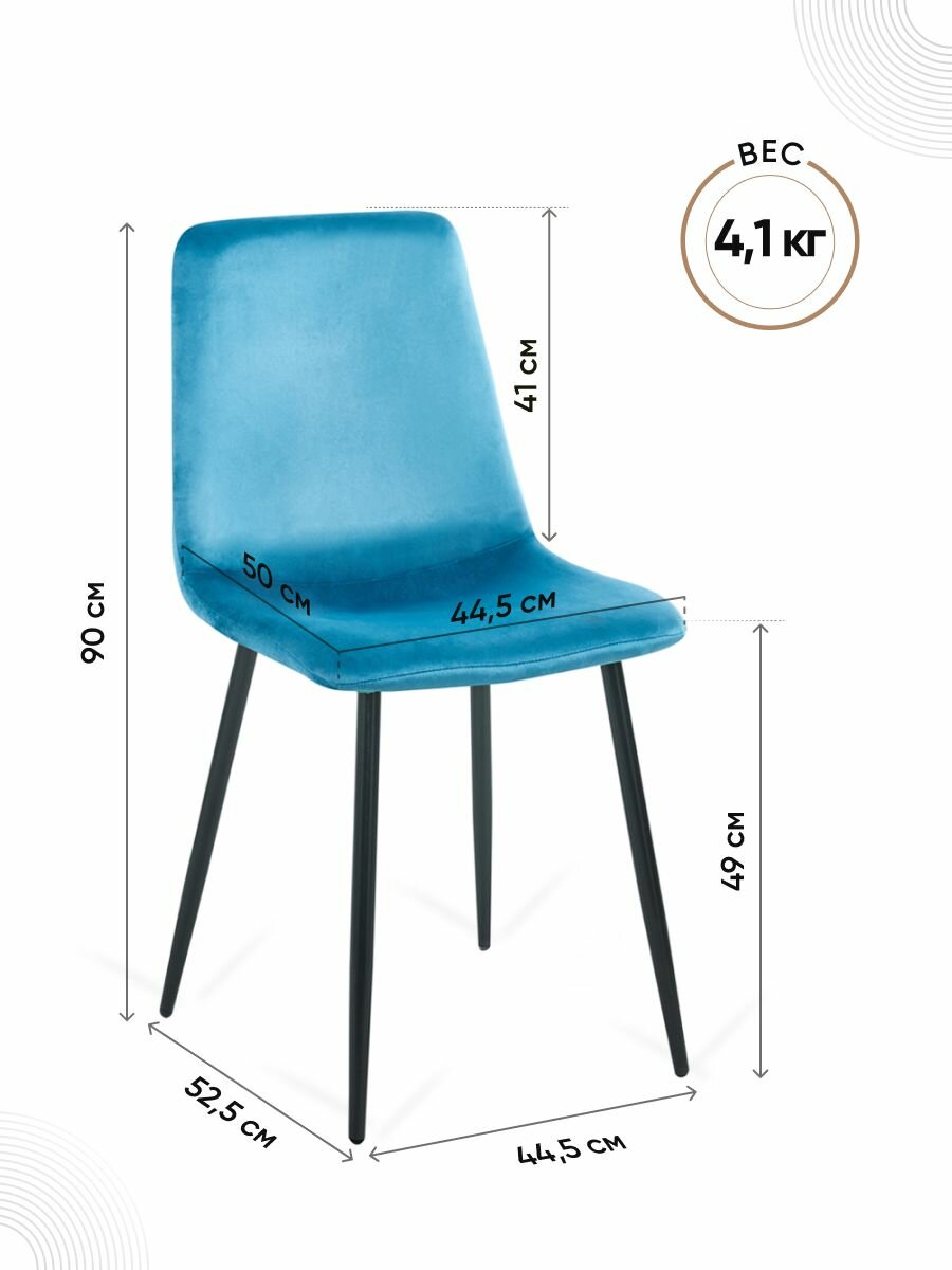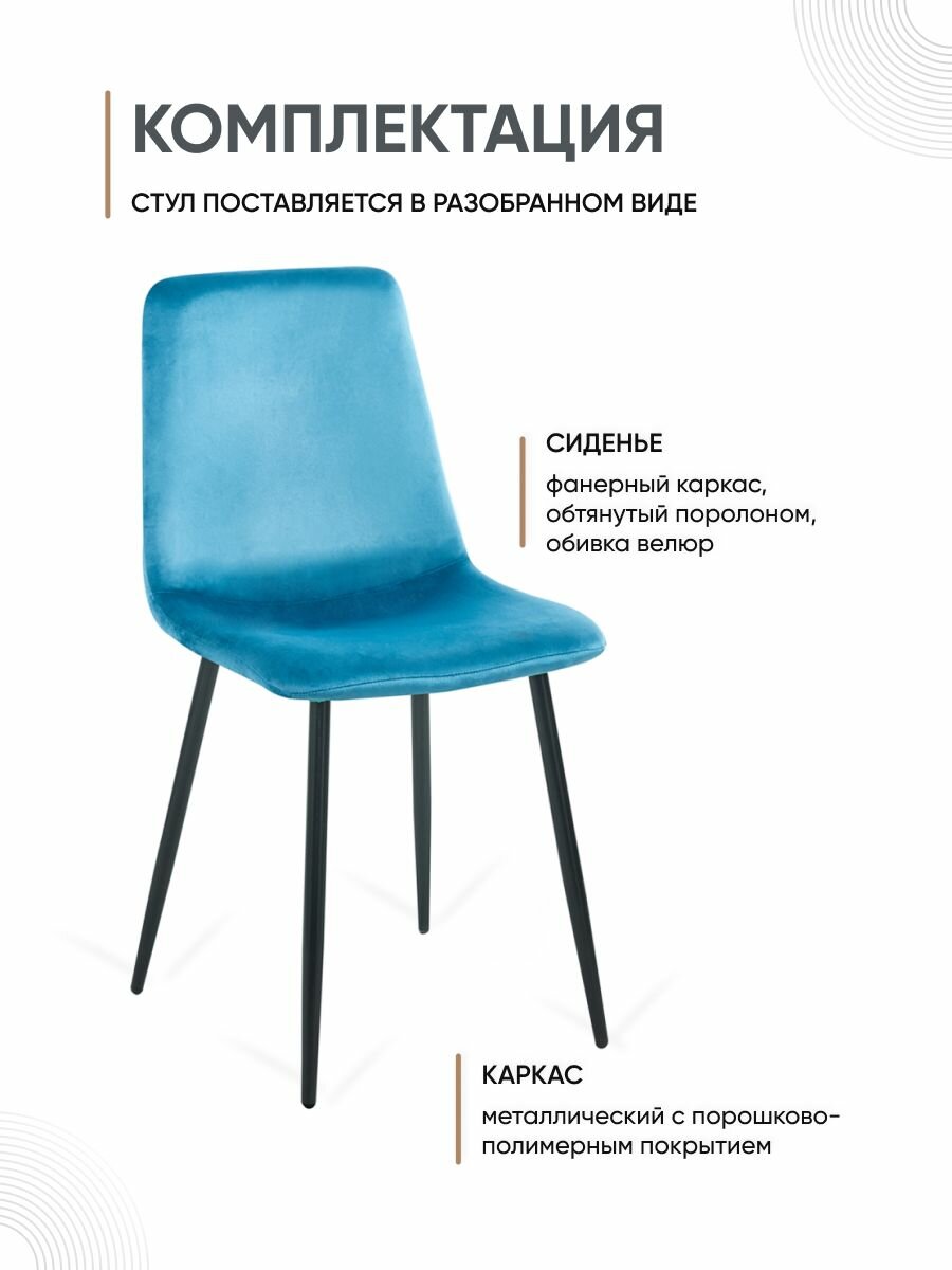 Купить Стул со спинкой мягкий велюровый, комплект 4 шт, цвет сине-зеленый