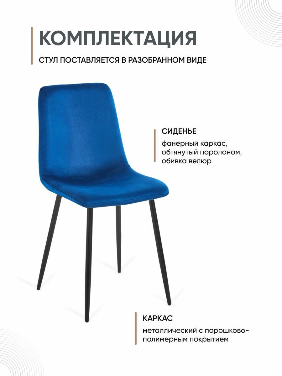 Купить Стул со спинкой мягкий велюровый, комплект 4 шт, цвет темно-синий
