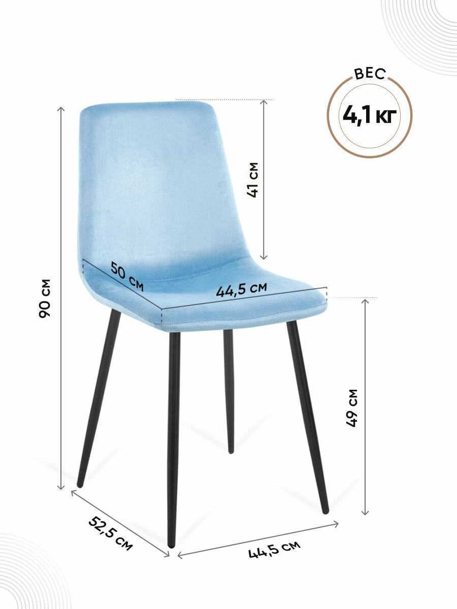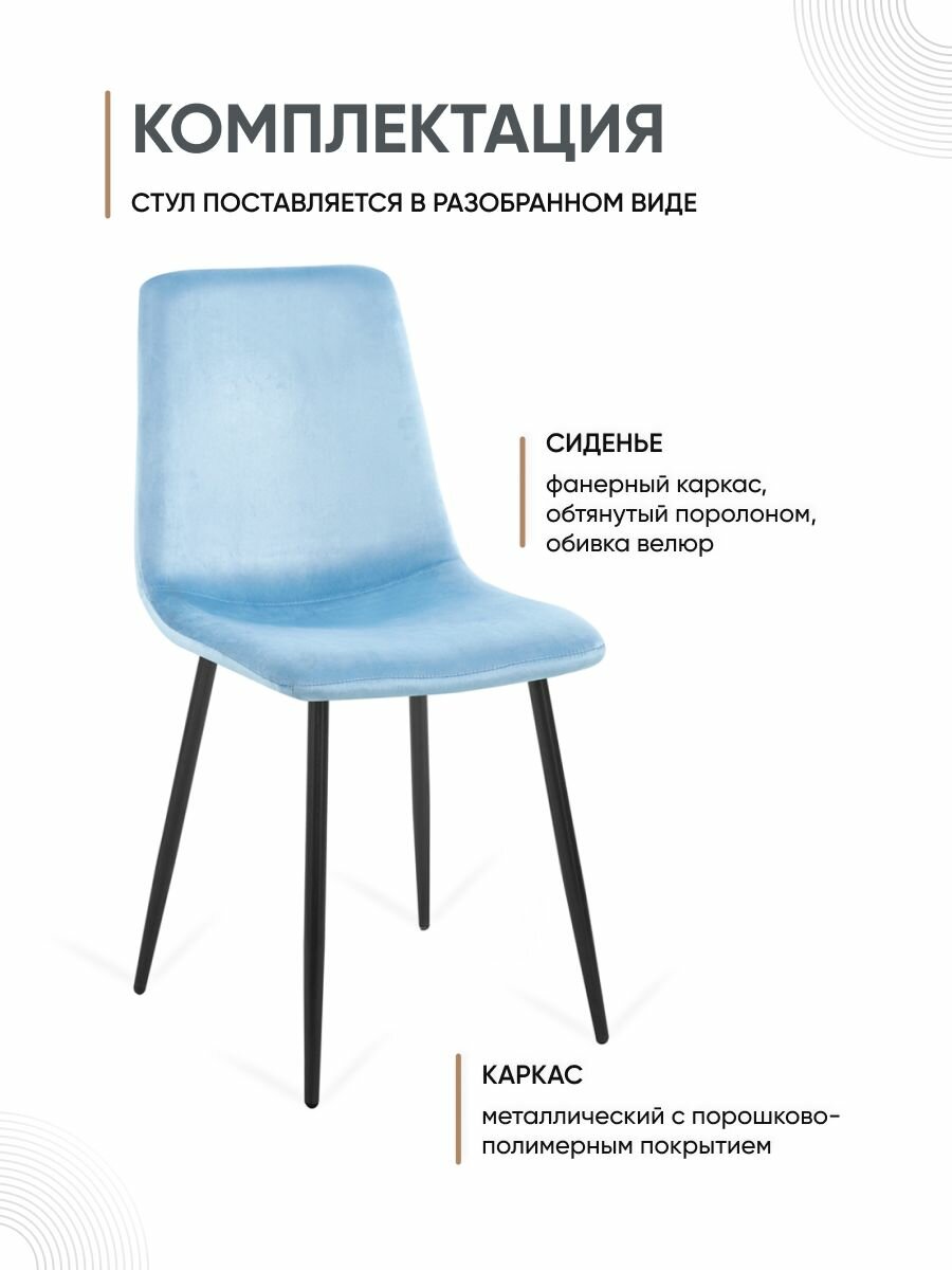 Купить Стул со спинкой мягкий велюровый, комплект 4 шт, цвет серо-голубой
