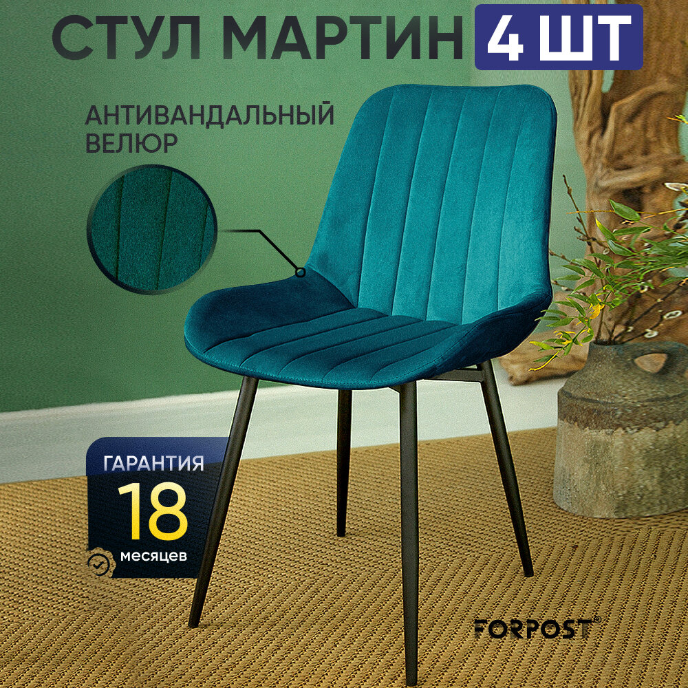 Стул для кухни мягкий со спинкой Мартин, 4 штуки изумруд интересное: