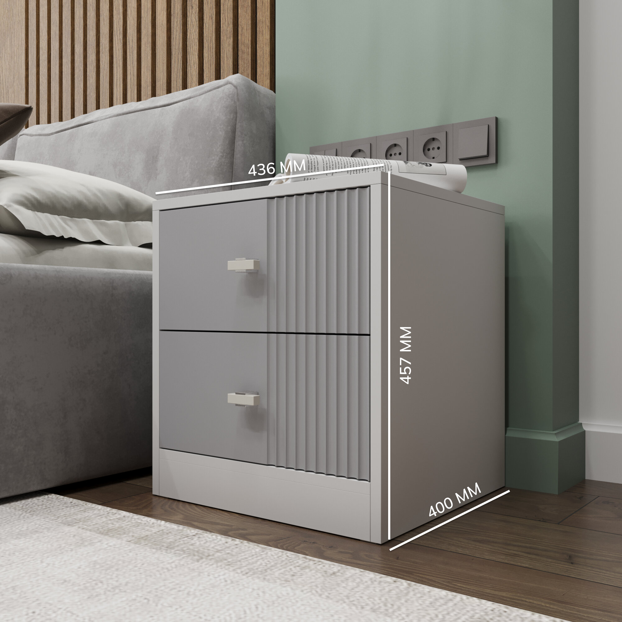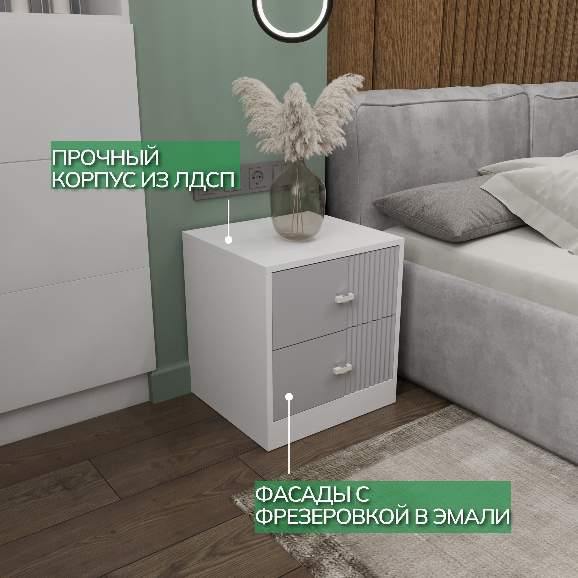 Прикроватная тумба KOMODO ВОЛНА-2, с фрезеровкой, белая/серая 43.6х40х45.7