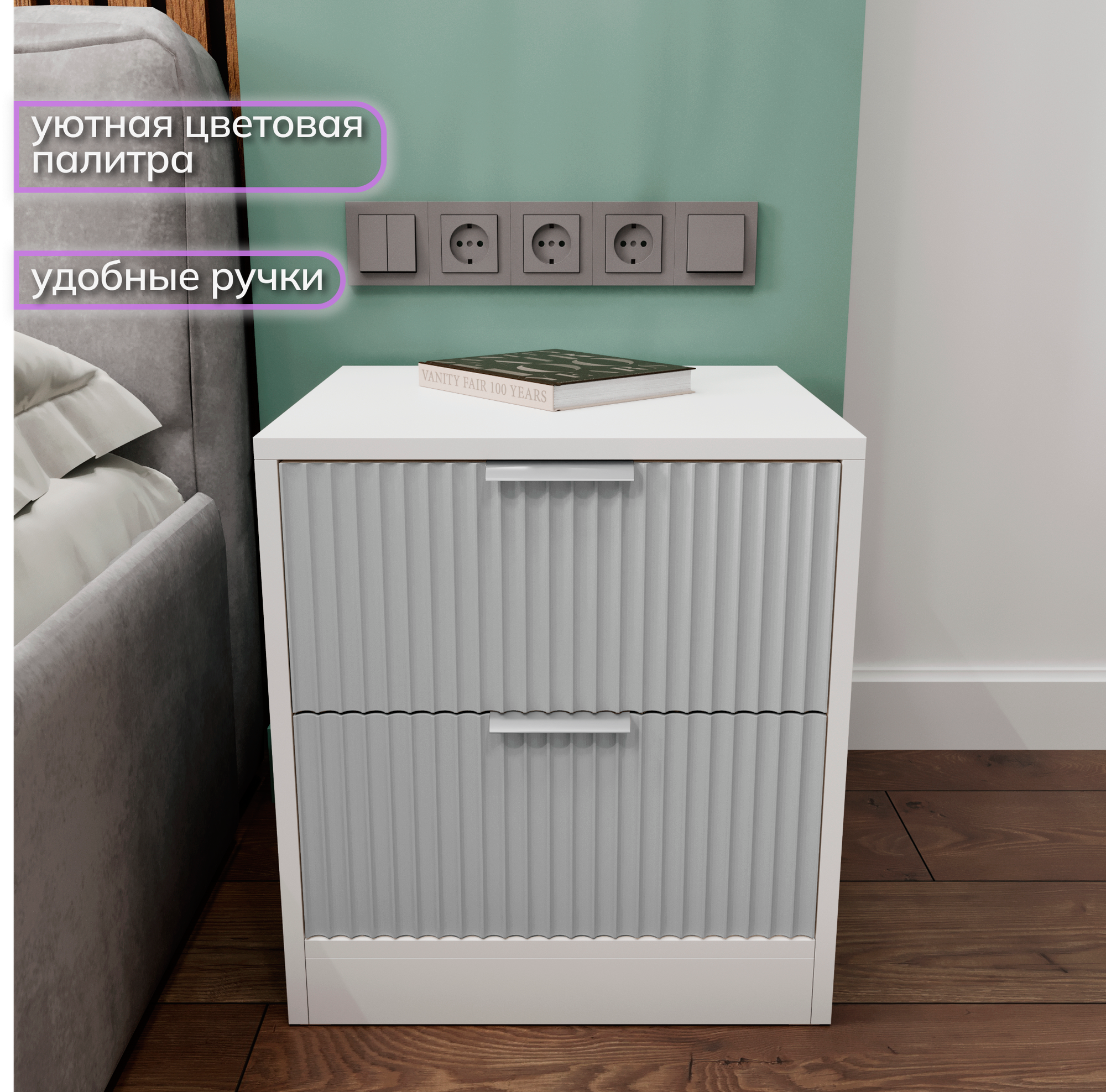 СохранитьПрикроватная тумба KOMODO ВОЛНА-1 белая/светло-серая, 2 ящика, 43.6х40х45.7 интересное: