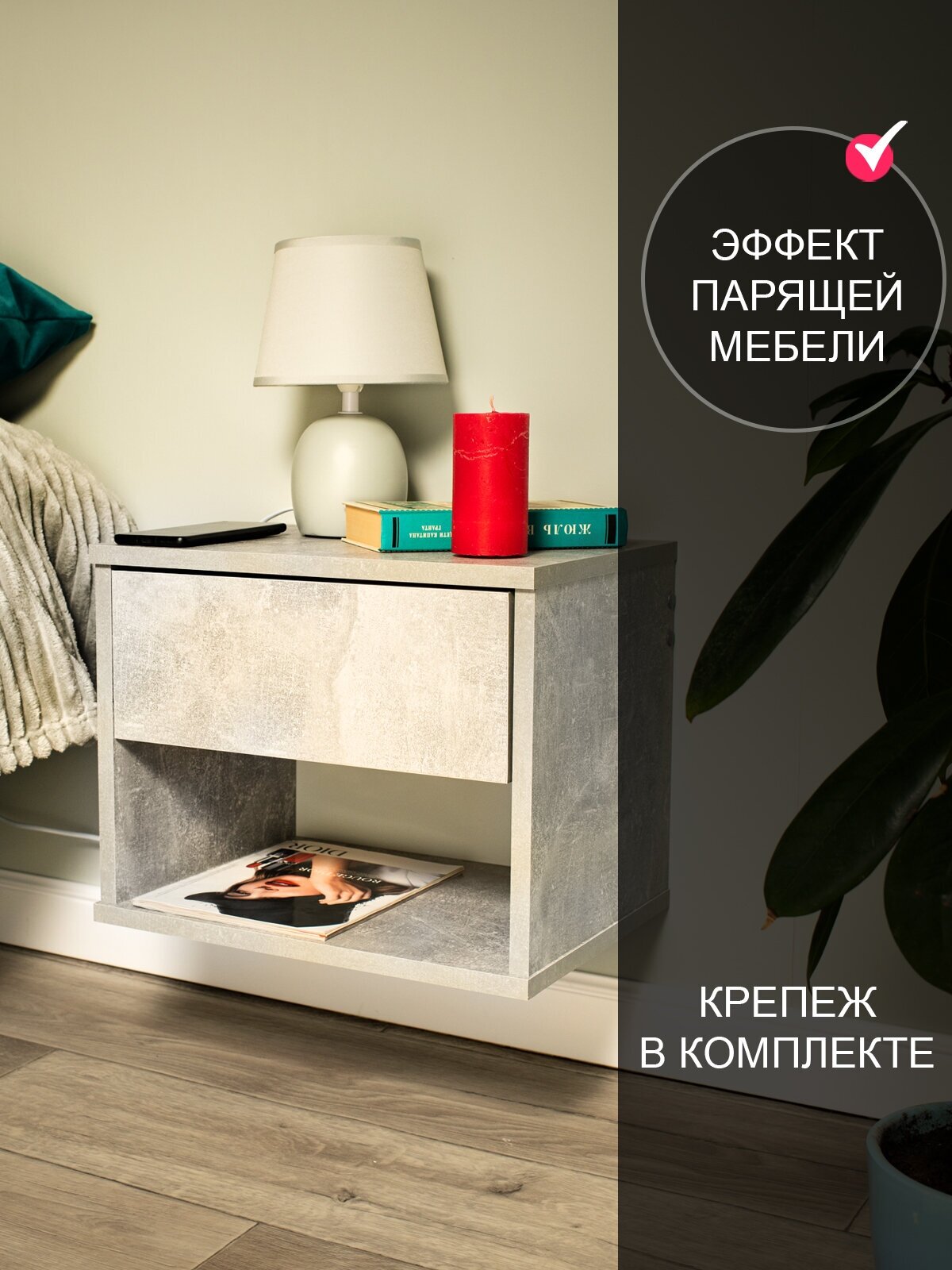 Тумба прикроватная подвесная "Дженни 3" интересное: