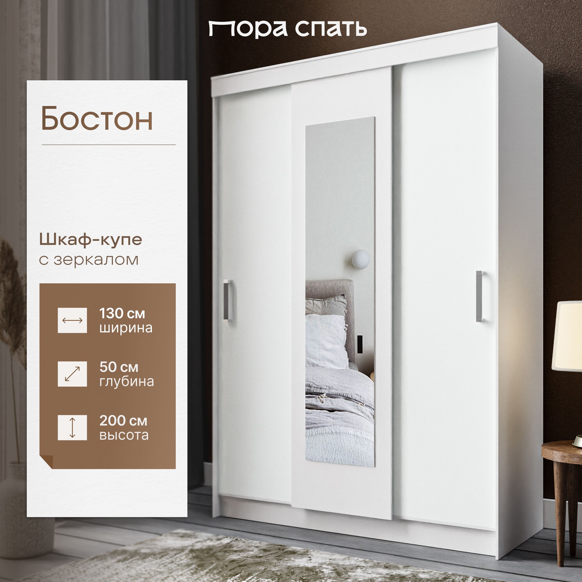 Шкаф-купе с зеркалом Бостон, 130х50х216 см, Белый, Пора Спать интересное: