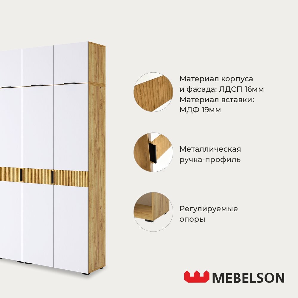 Шкаф четырехдверный "Бери К1", модульный, распашной, дуб крафт золотой/белое дерево.