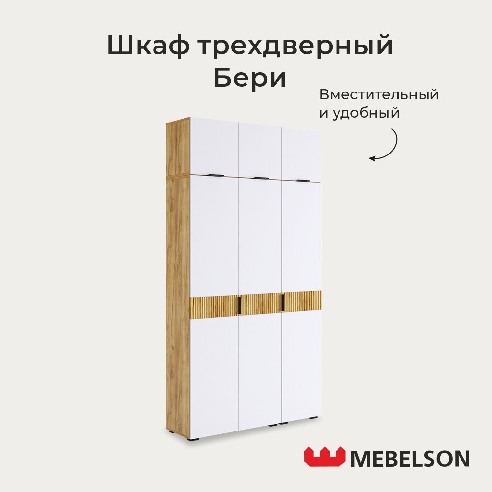 Купить Шкаф трехдверный "Бери К2", модульный, распашной, дуб крафт золотой/белое дерево.