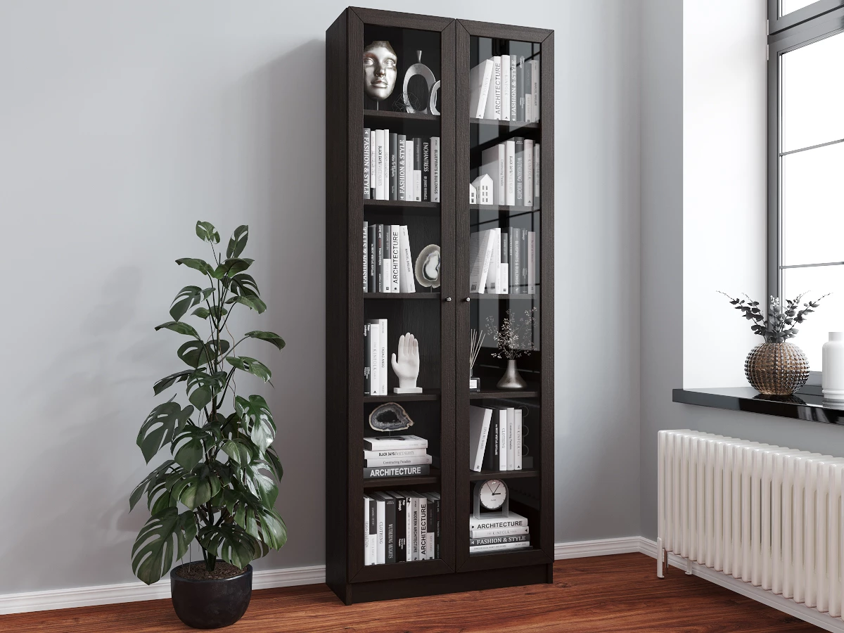 Шкаф стеллаж Билли Billy по мотивам Икеа 20, 80х30х202 см, Венге Цаво ЛДСП/рамка МДФ/стекло интересное: