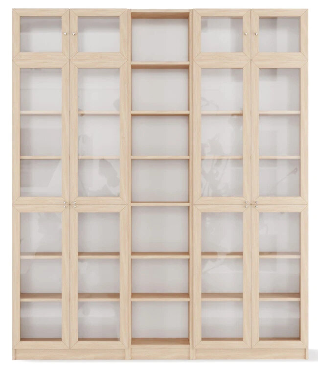 Шкаф стеллаж Билли Billy по мотивам Икеа 11, 120х30х202 см, Дуб молочный ЛДСП/рамка МДФ/стекло