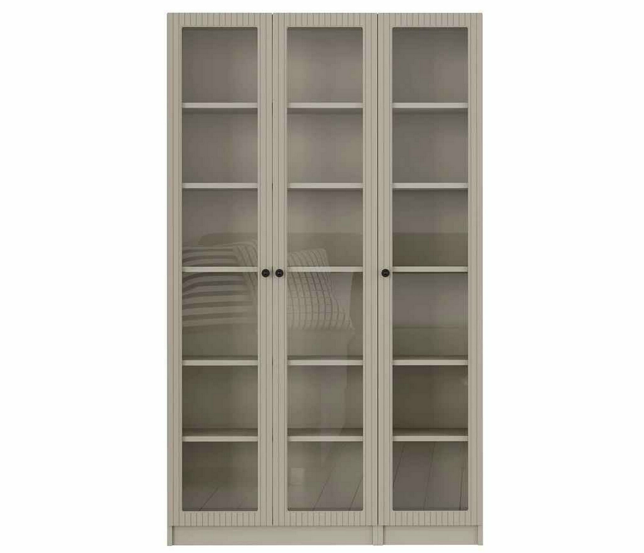 Шкаф стеллаж Билли Billy по мотивам Икеа 11, 120х30х202 см, Дуб молочный ЛДСП/рамка МДФ/стекло