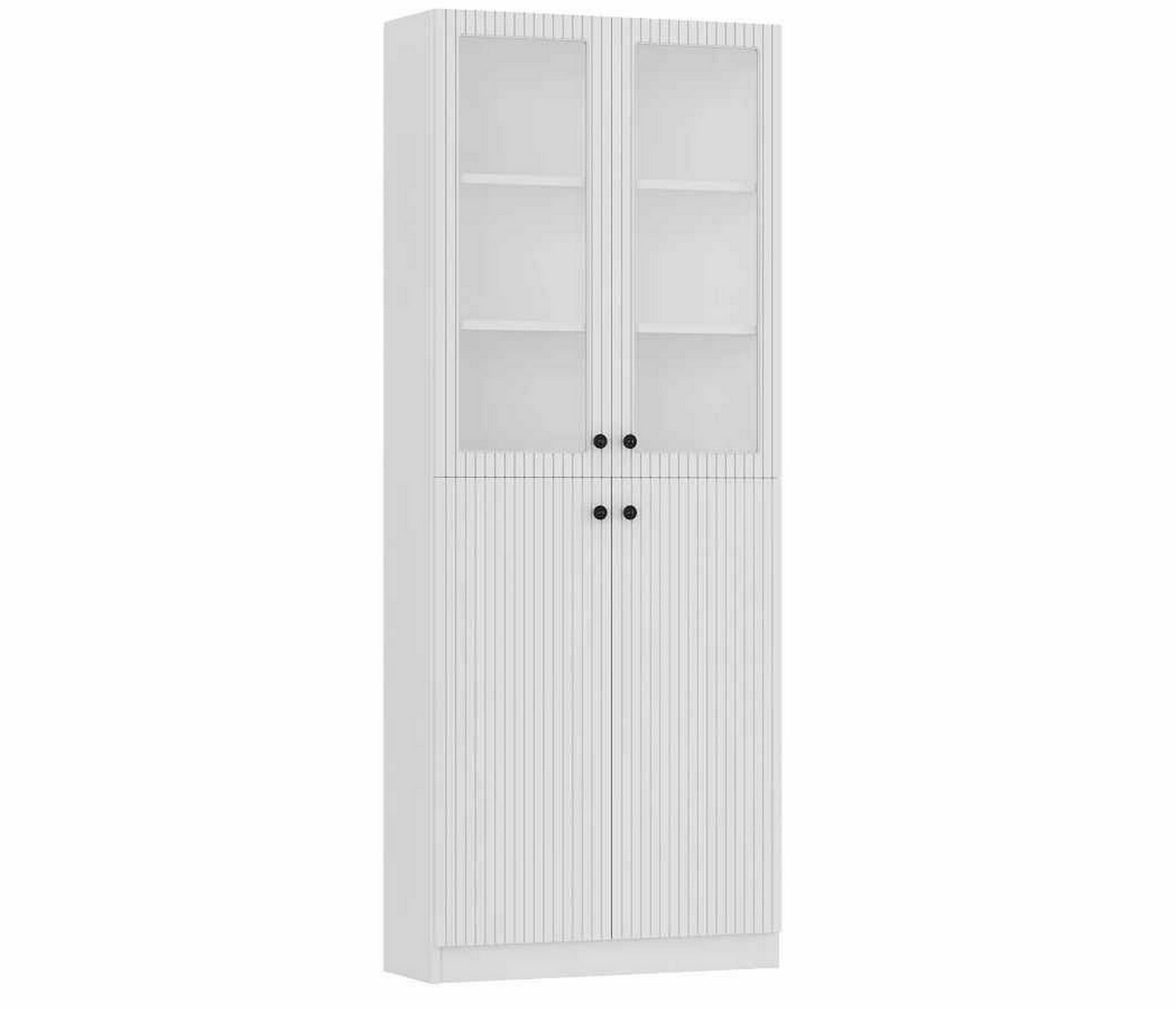 Шкаф стеллаж Билли Billy по мотивам Икеа 20, 80х30х202 см, Белый ЛДСП/рамка МДФ/стекло