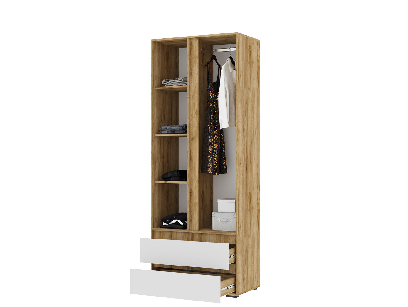 Шкаф 2х створчатый Хелен ШК-01 с выдвижными ящиками (0,800х2,100х0,460) цвет Дуб крафт золото - Белый Стендмебель