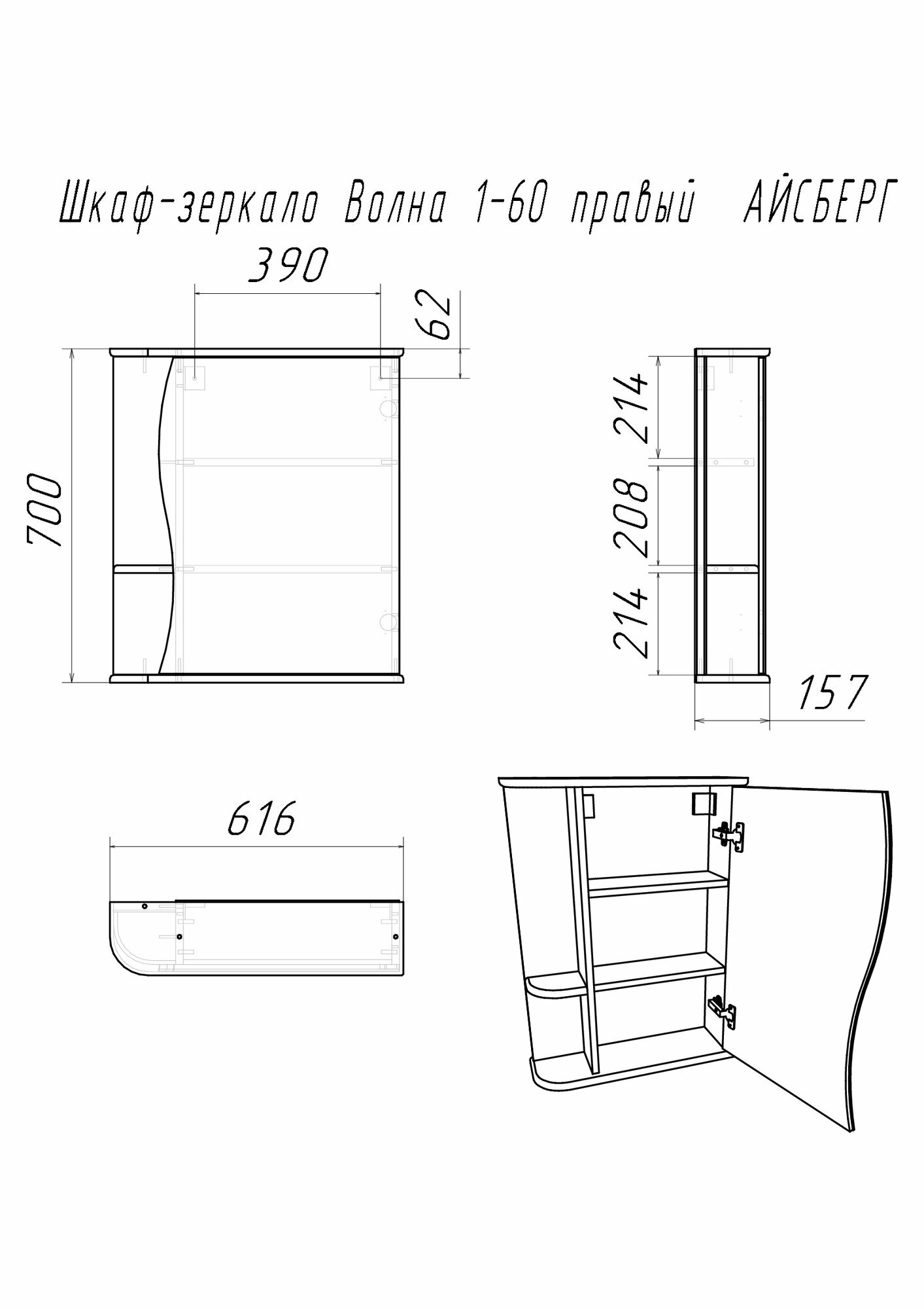 Шкаф-зеркало Волна 1-60 правый айсберг интересное: