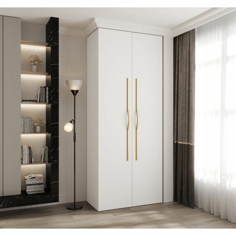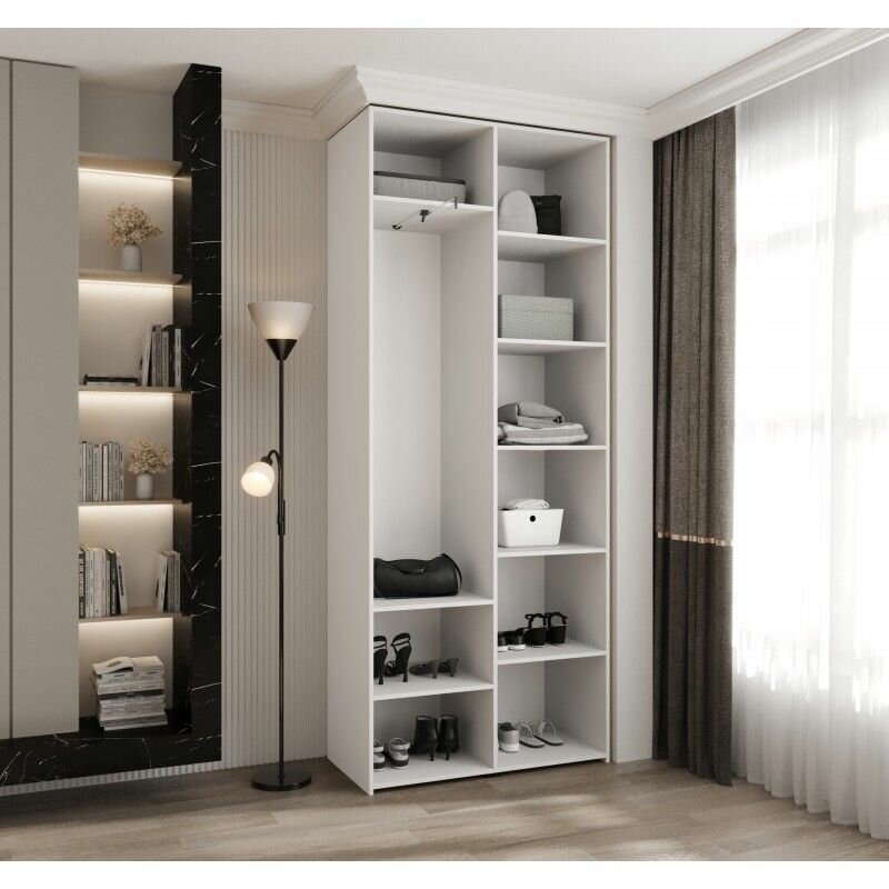 Шкаф для одежды распашной Нонтон Луас, 120 см, 7 полок и штанга, белый глянец